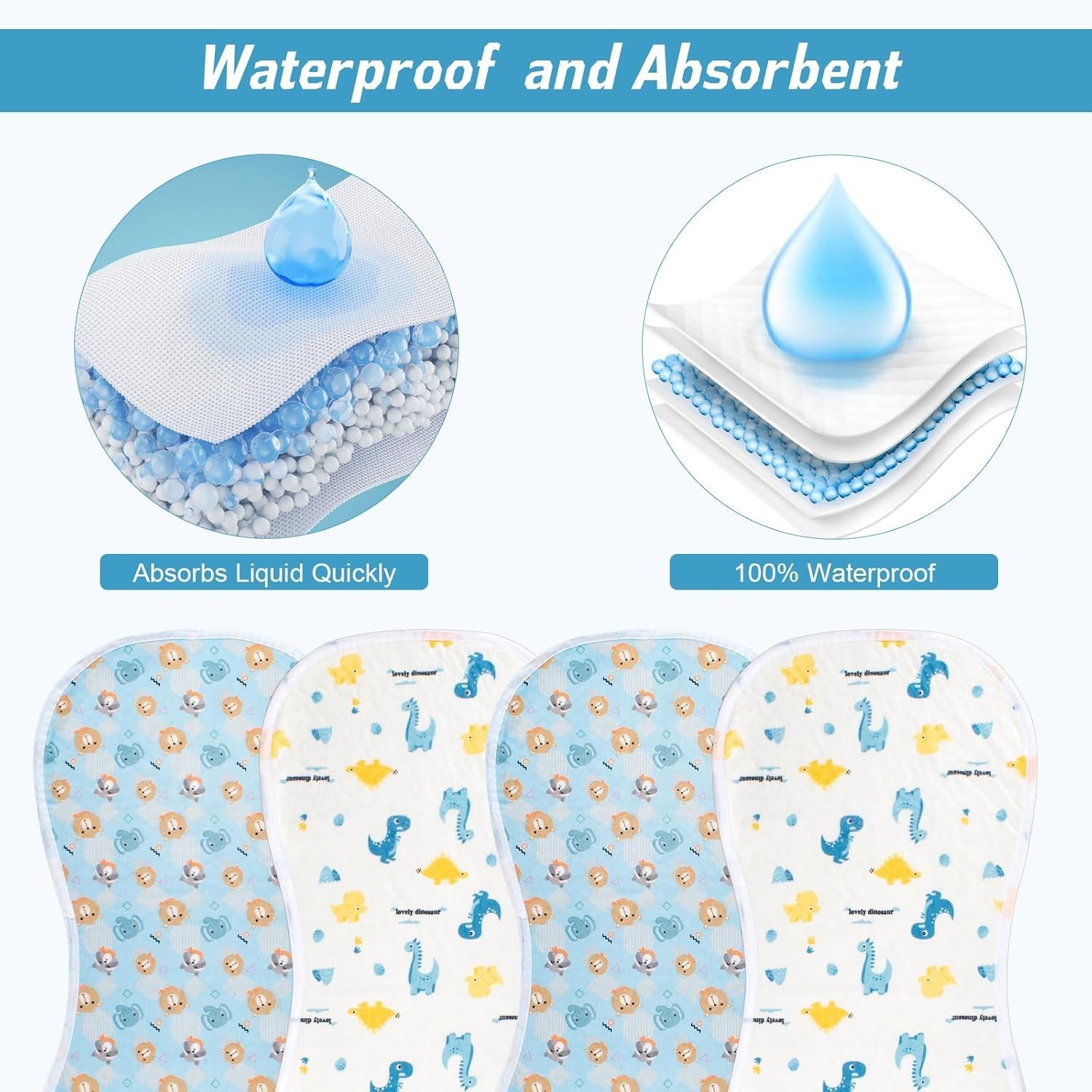 4 Packs Peanut Changing Pad Cover, 4-Layer Thickened Changing Pad Liner Waterpro