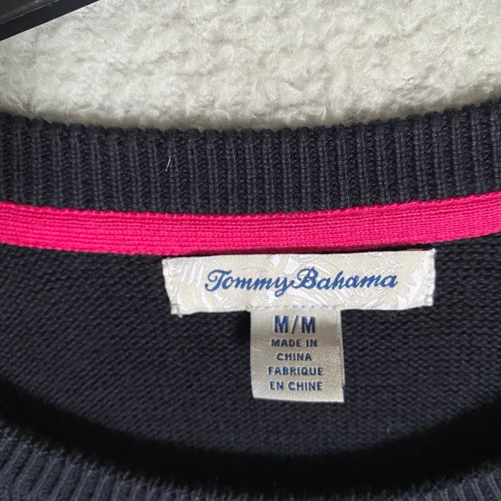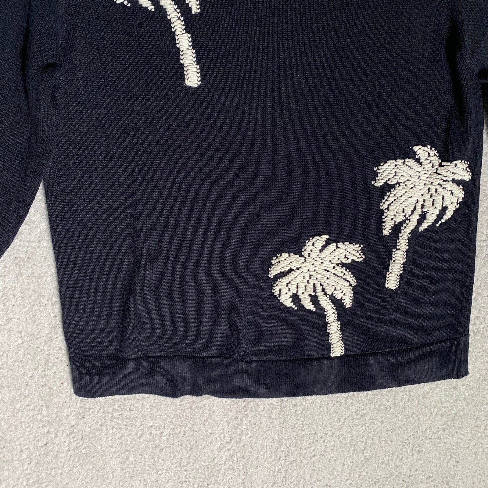 как выглядит Tommy Bahama Navy Blue Palm Tree Embroidered 3/4 Sleeve Knit Sweater Size Medium фото