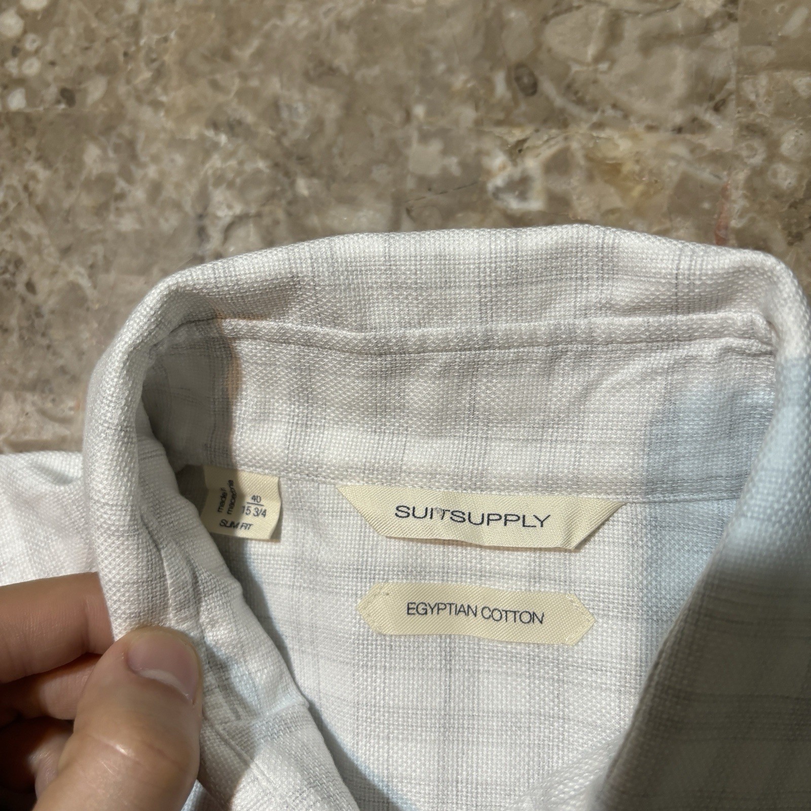 как выглядит Suitsupply Shirt Mens 40 15.75 Slim Fit Grey Check Egyptian Cotton Monti фото