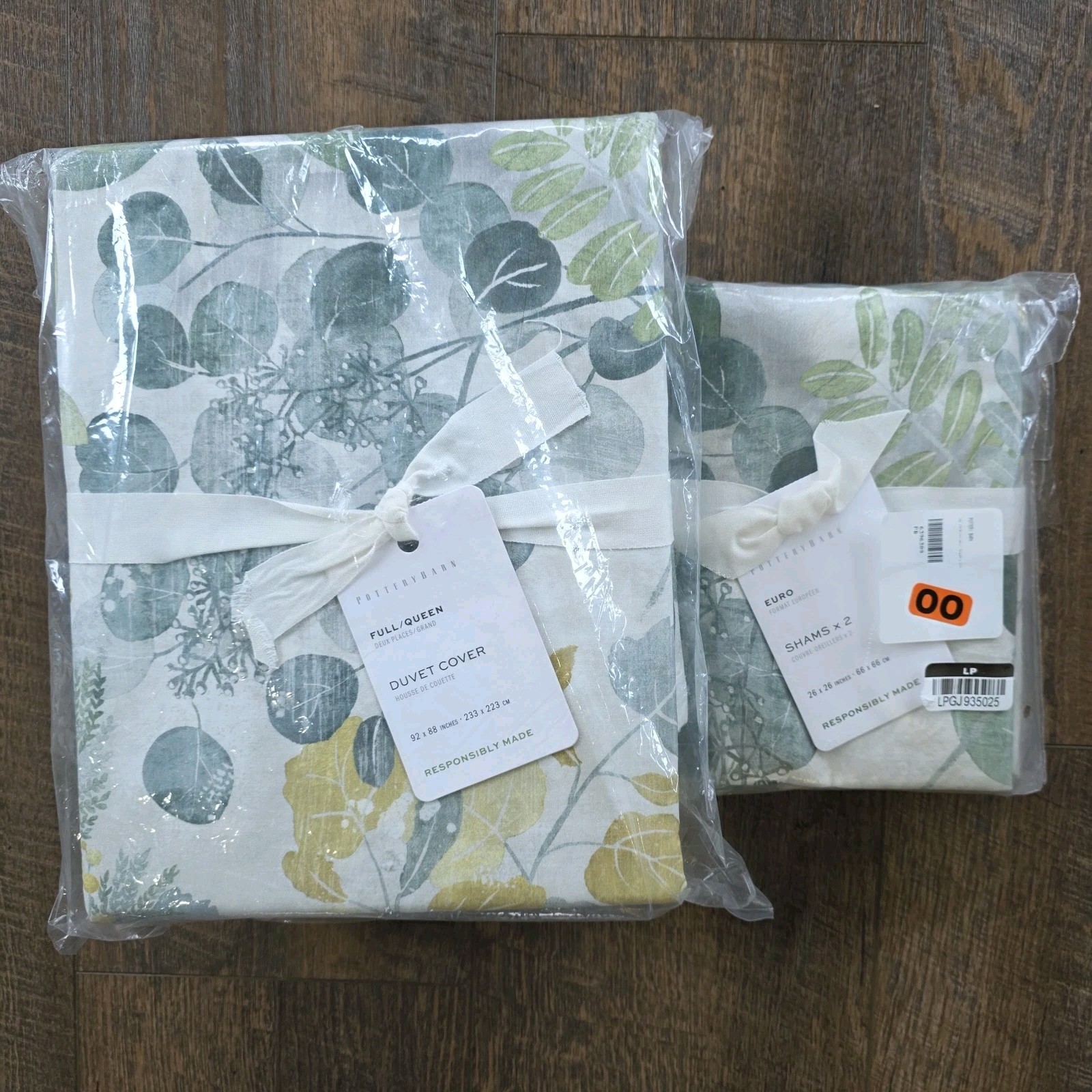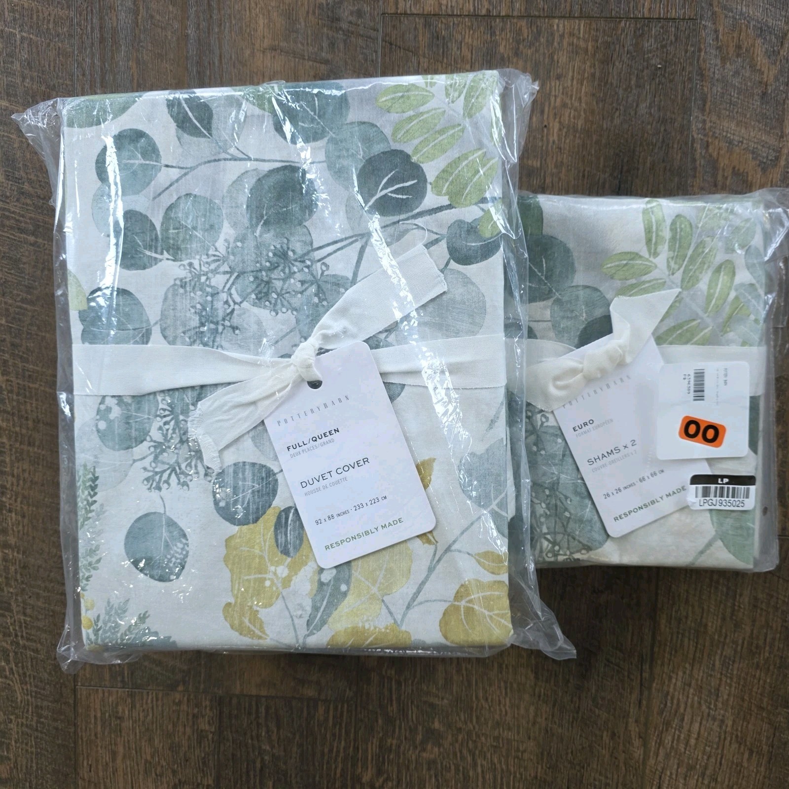Pottery Barn Full Queen Botanical Garden Duvet Cover 2 Shams New