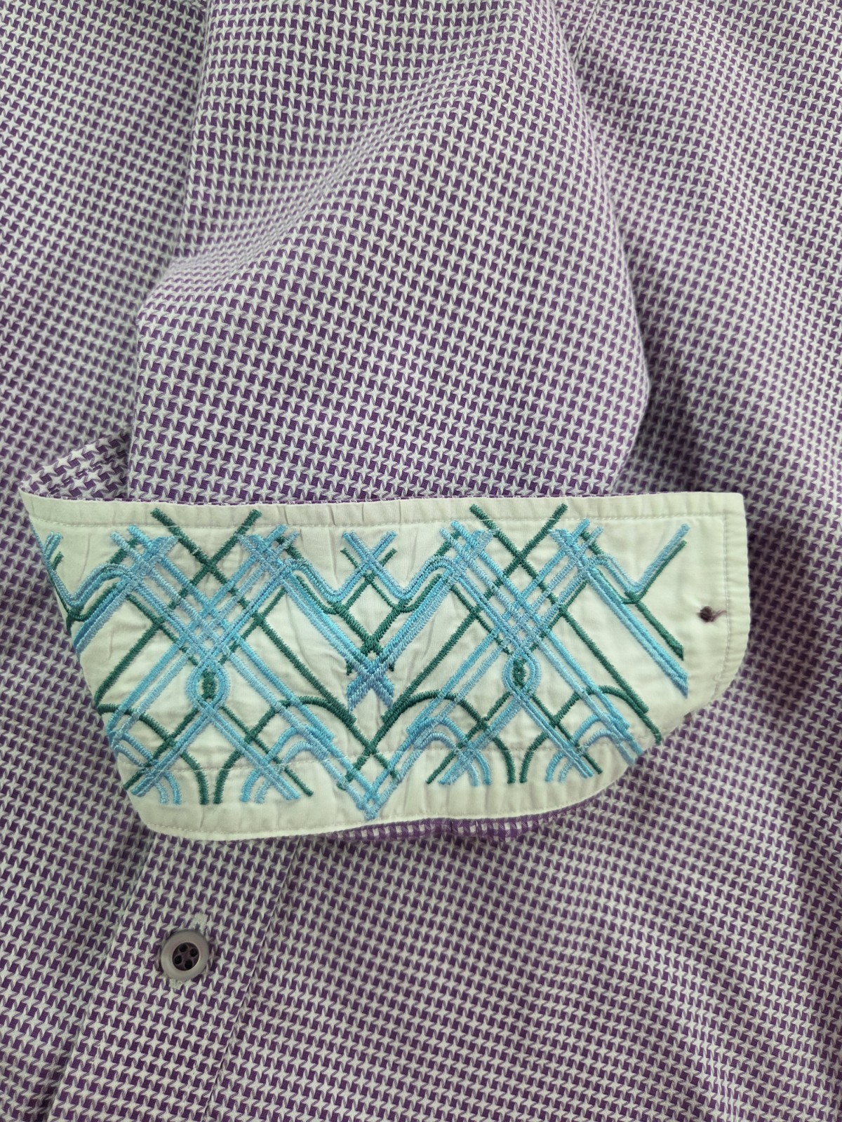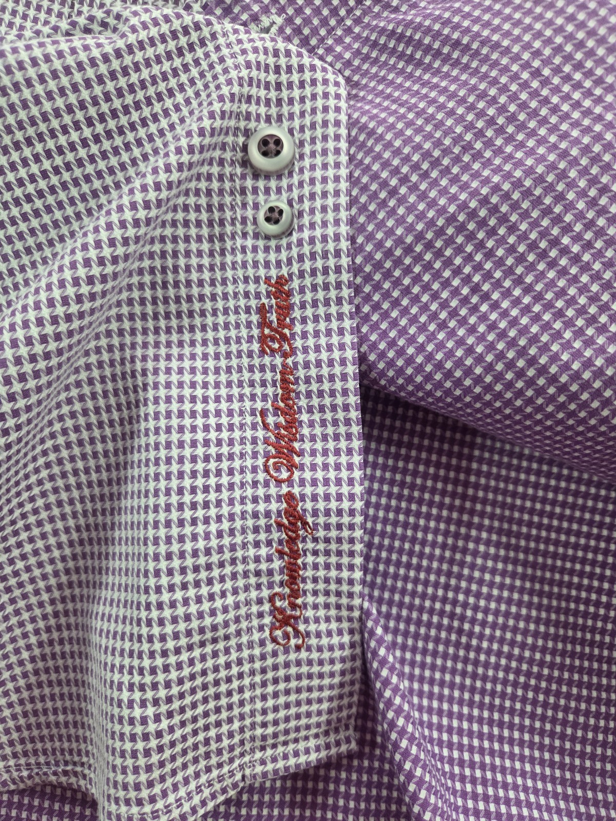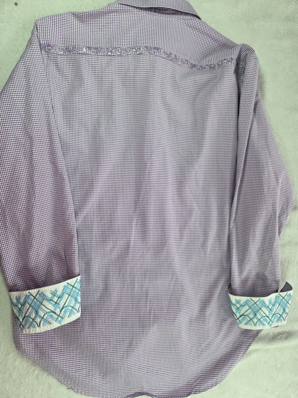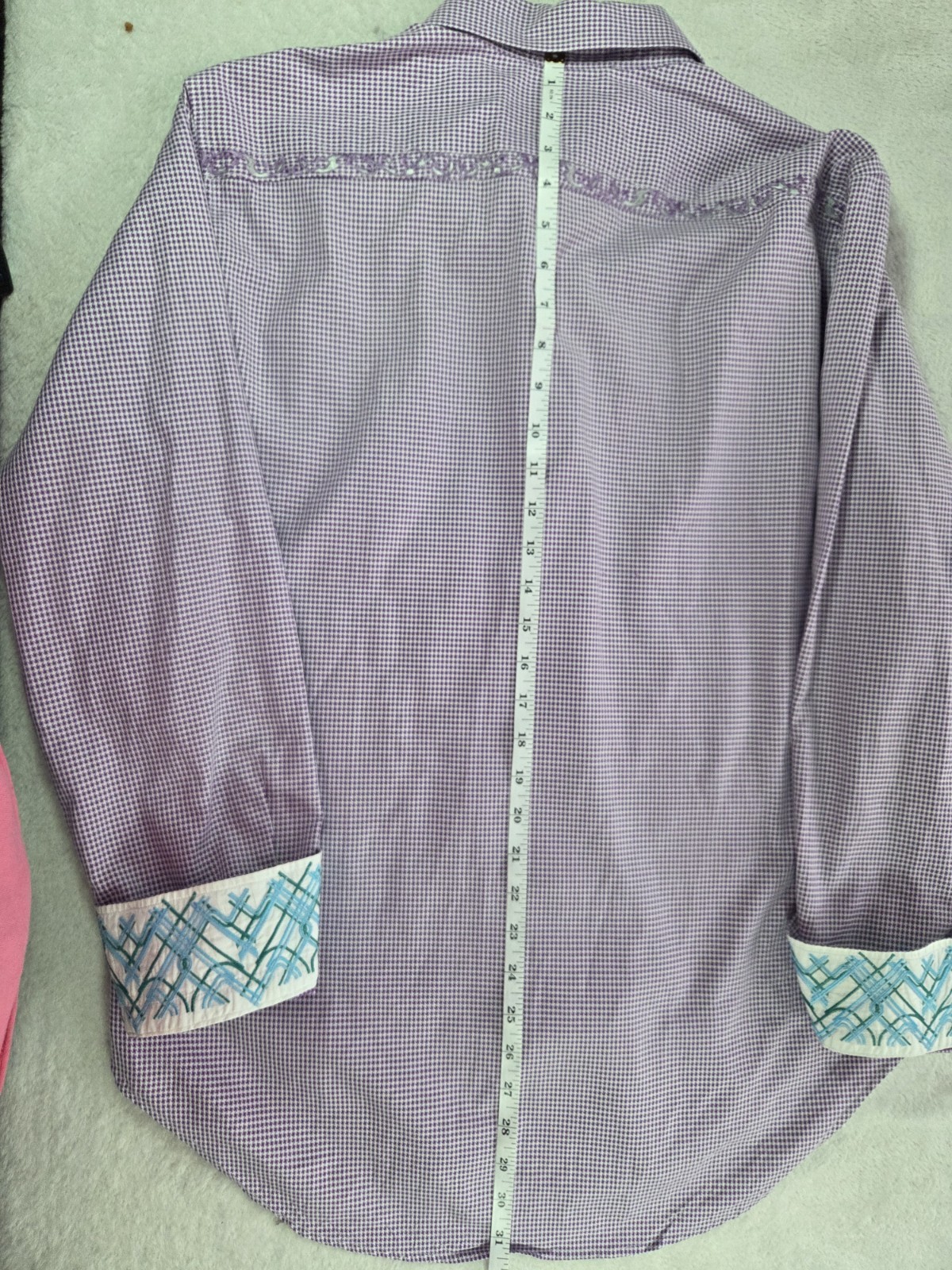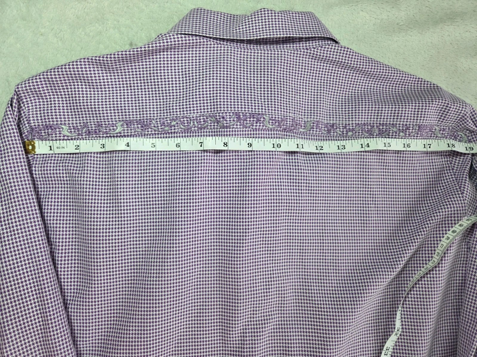 как выглядит Robert Graham Men s Medium Purple Check Button Down Shirt Embroidered Cuffs фото