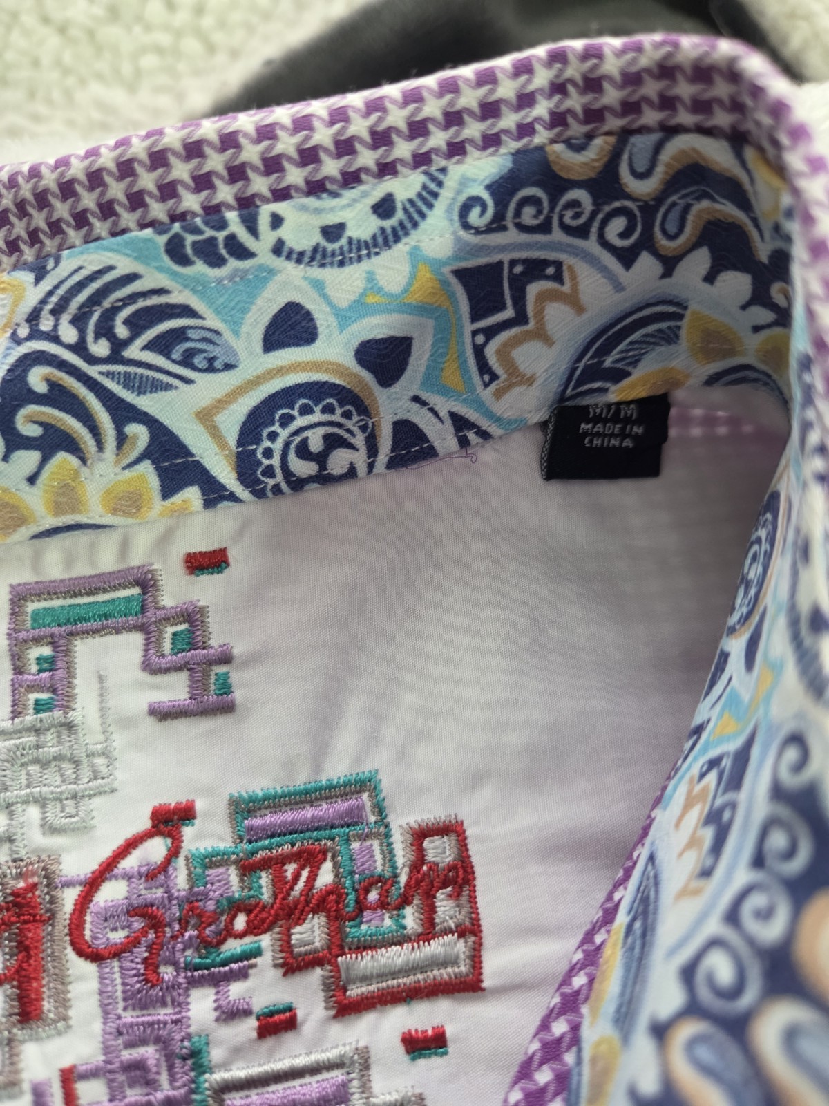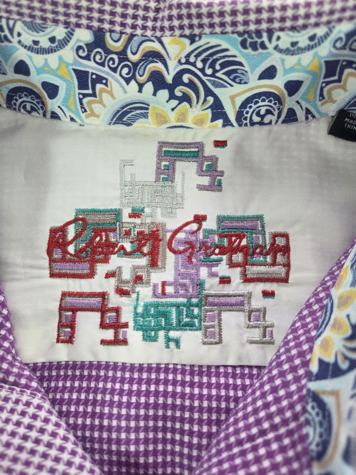 Robert Graham Men s Medium Purple Check Button Down Shirt Embroidered Cuffs