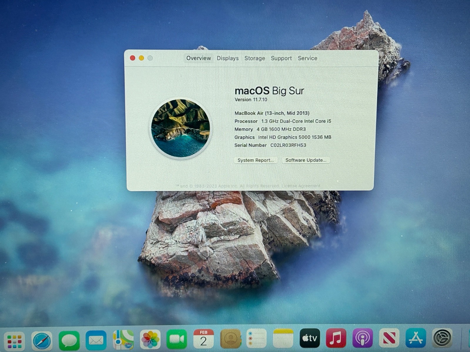 Apple MacBook Air 13 2013 A1466 i5 4th Gen 1.30GHz 4 GB RAM 128 GB SSD Big Sur