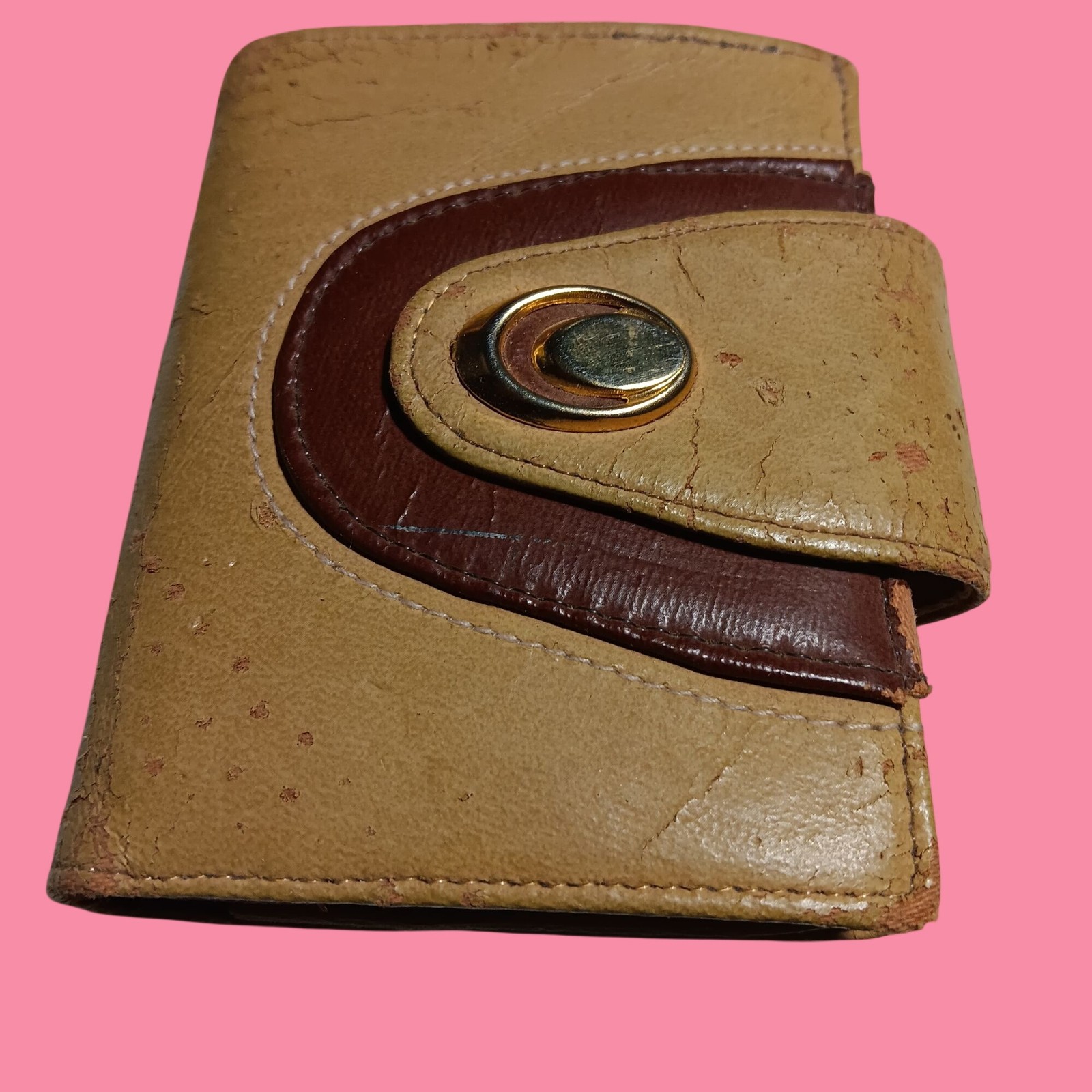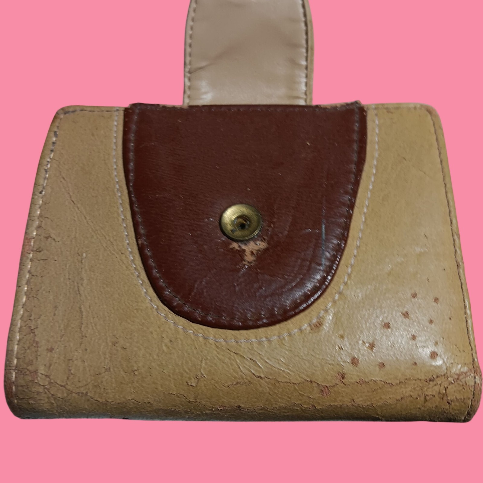 Vintage Leather Clutch ID Coin Wallet 1970s 4x3 Patina Crackled Brown/Tan 2 Tone