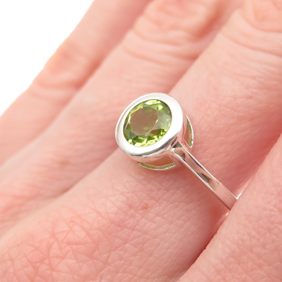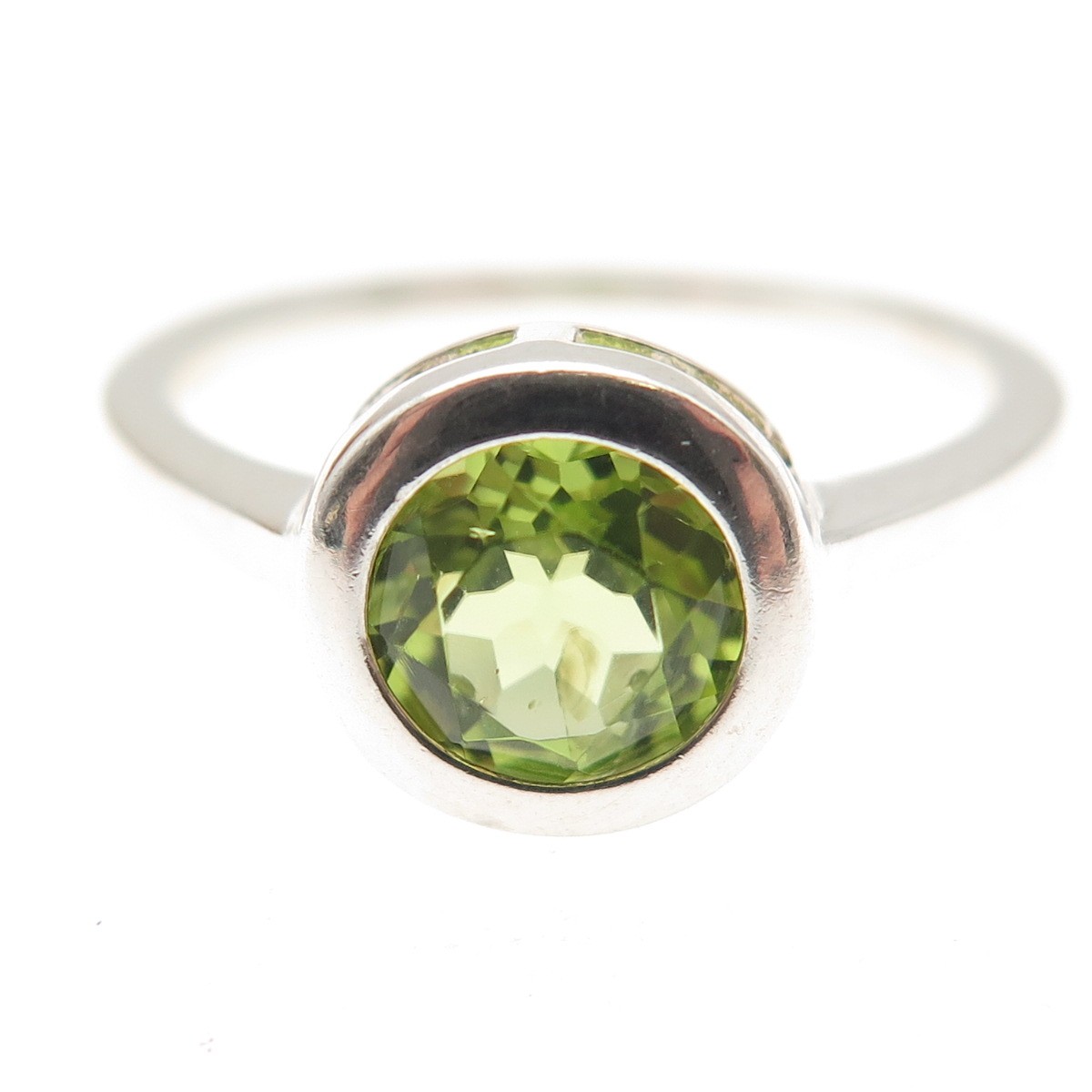 925 Sterling Silver Vintage Real Round-Cut Peridot Ring Size 8.25