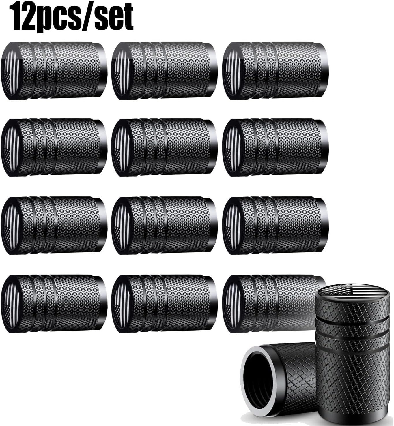 Stem Caps Tire Valve Stem Cap Cover 12PCS Universal Aluminum Alloy -Black