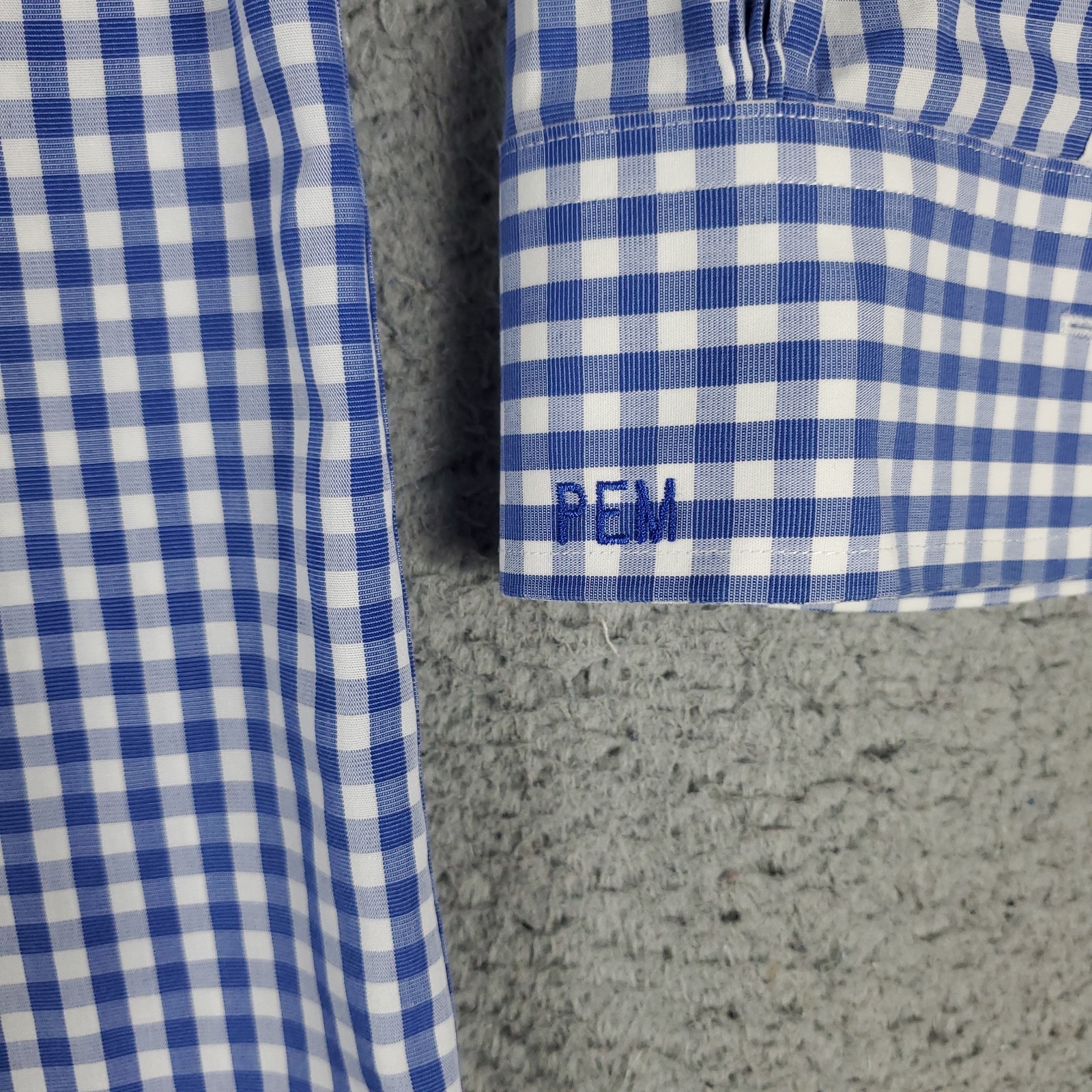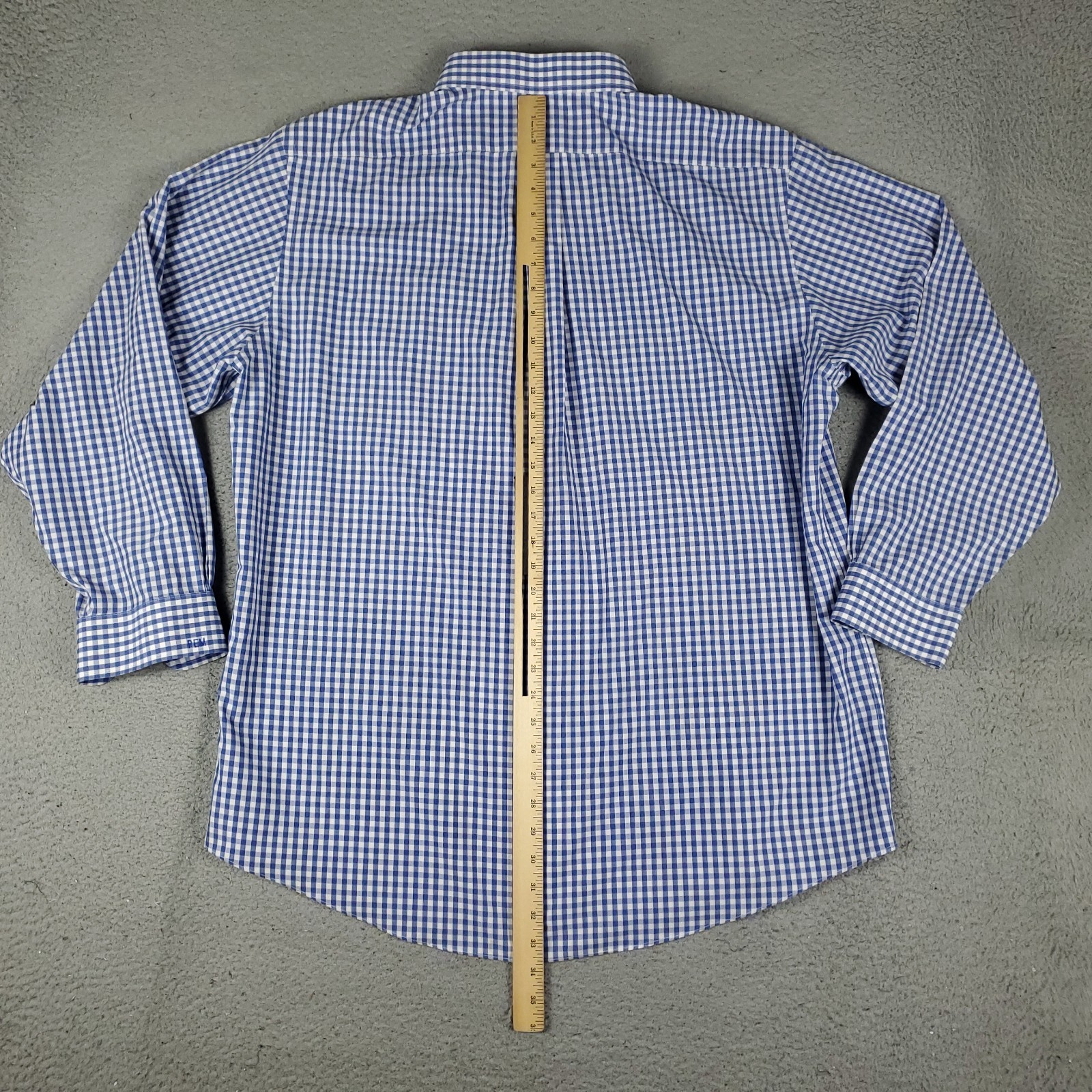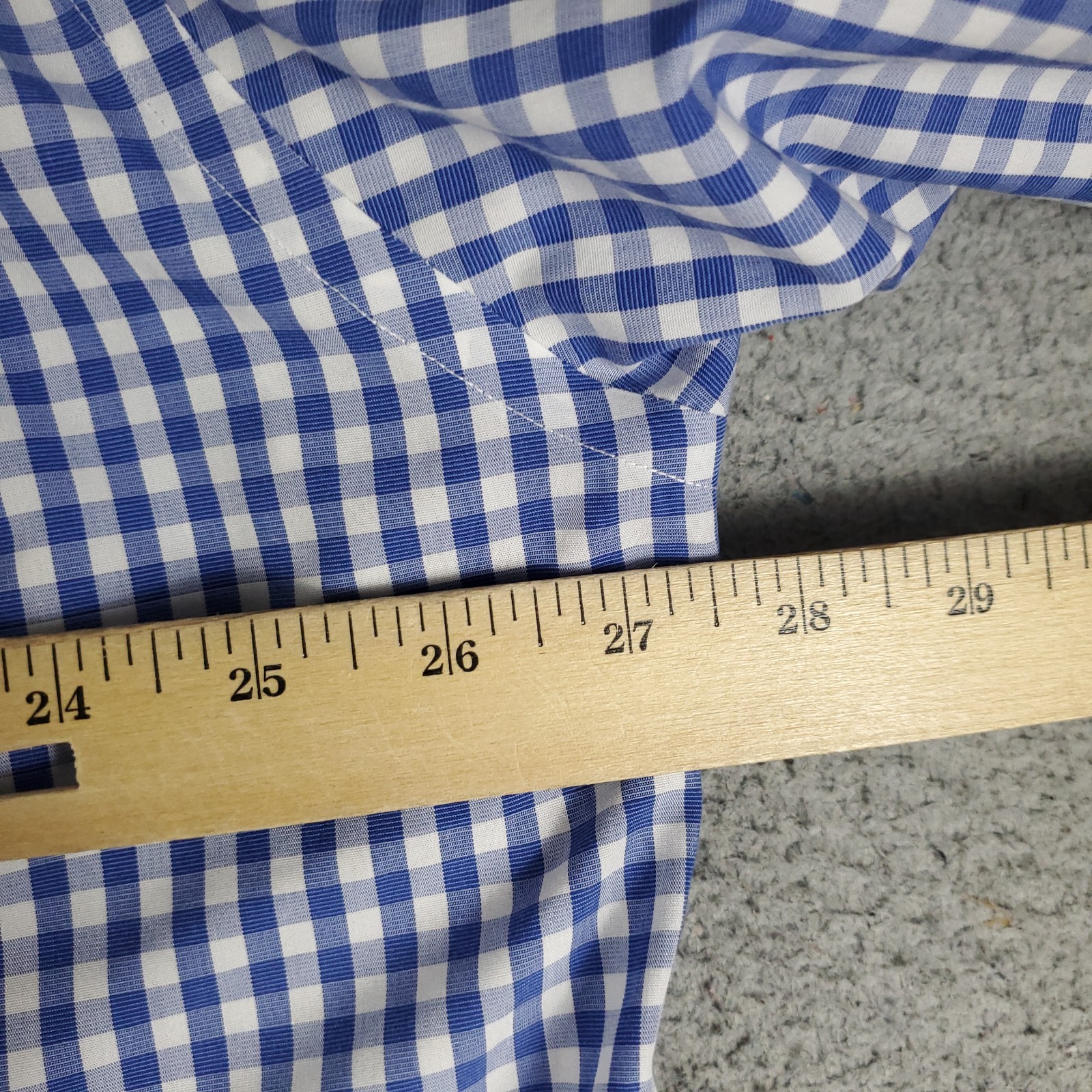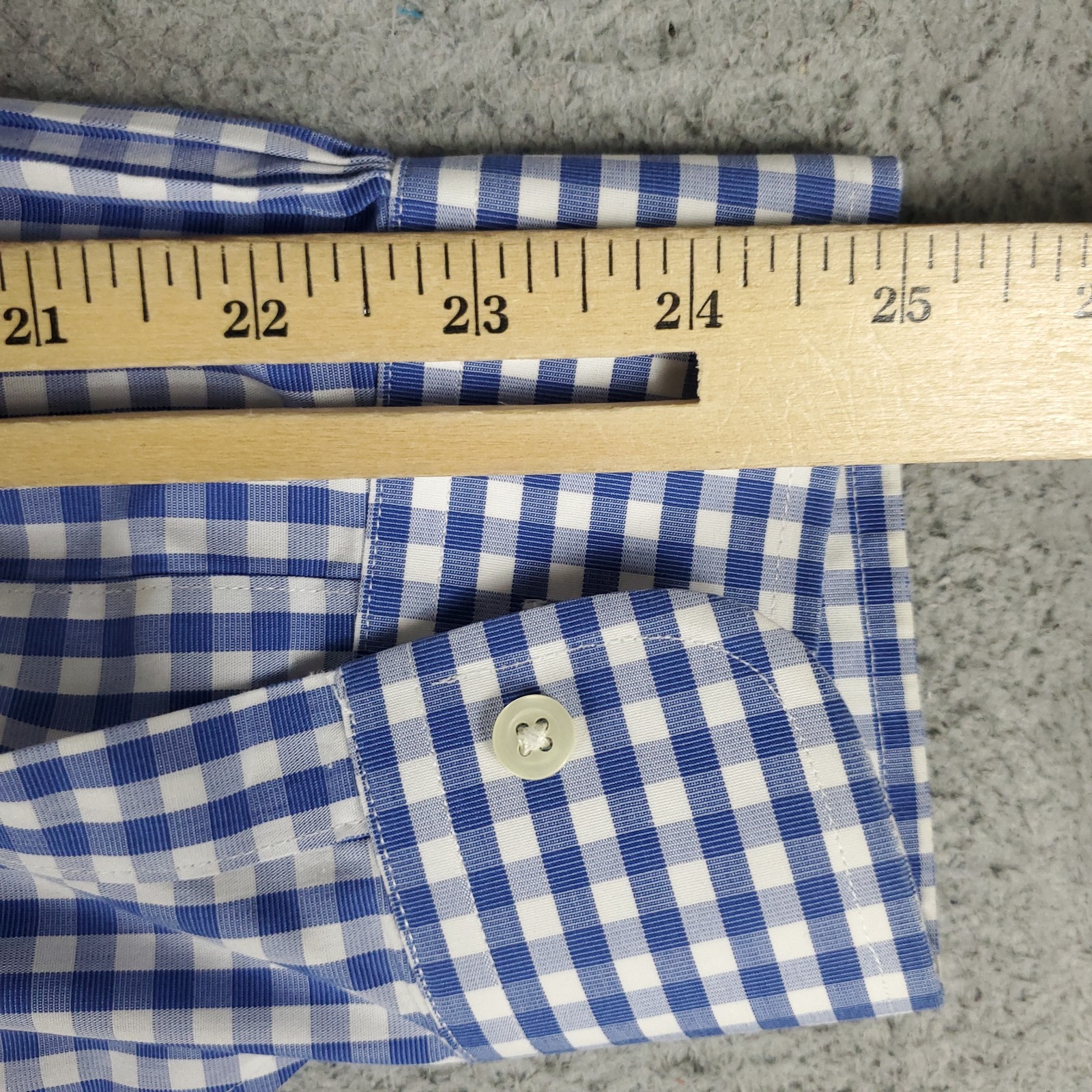 как выглядит Brooks Brothers Shirt Mens 17.5 Blue Plaid Dress Button Up Long Sleeve фото