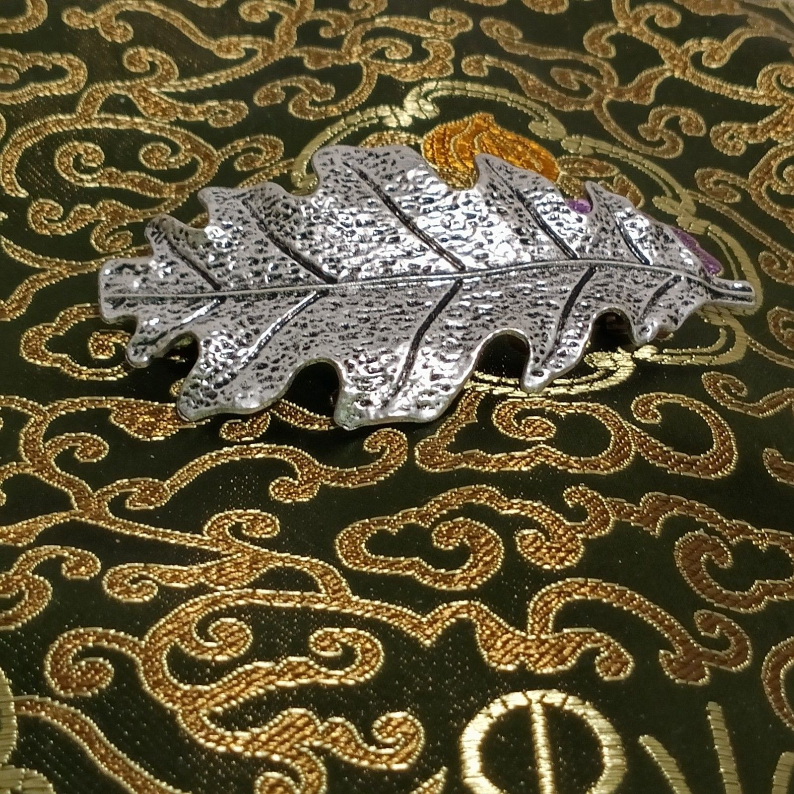 как выглядит Silver Tone Oak Leaf Barrette Hammered Textured Hair Clip 3.5in фото