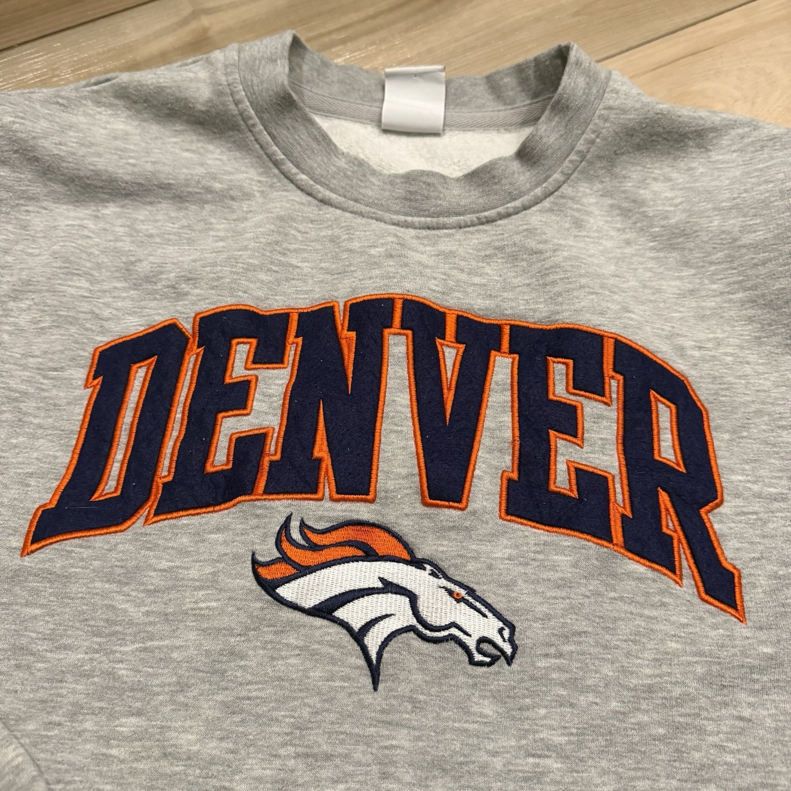 NFL Team Apparel Denver Broncos Crewneck Sweatshirt Gray Size L Embroidered