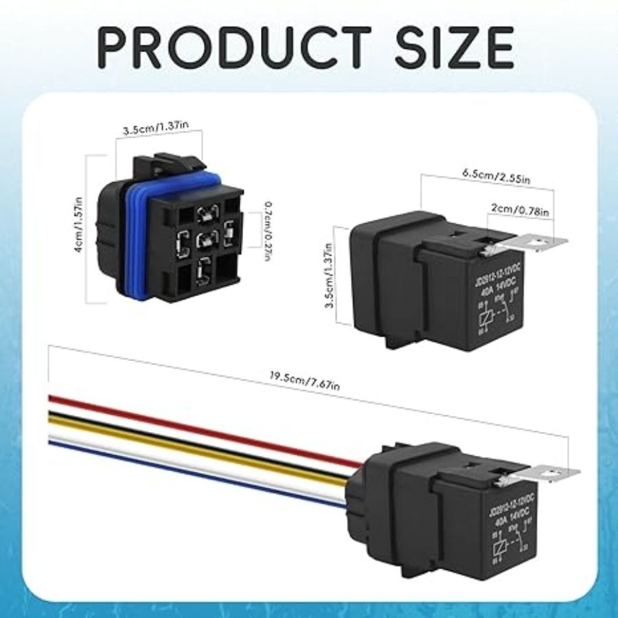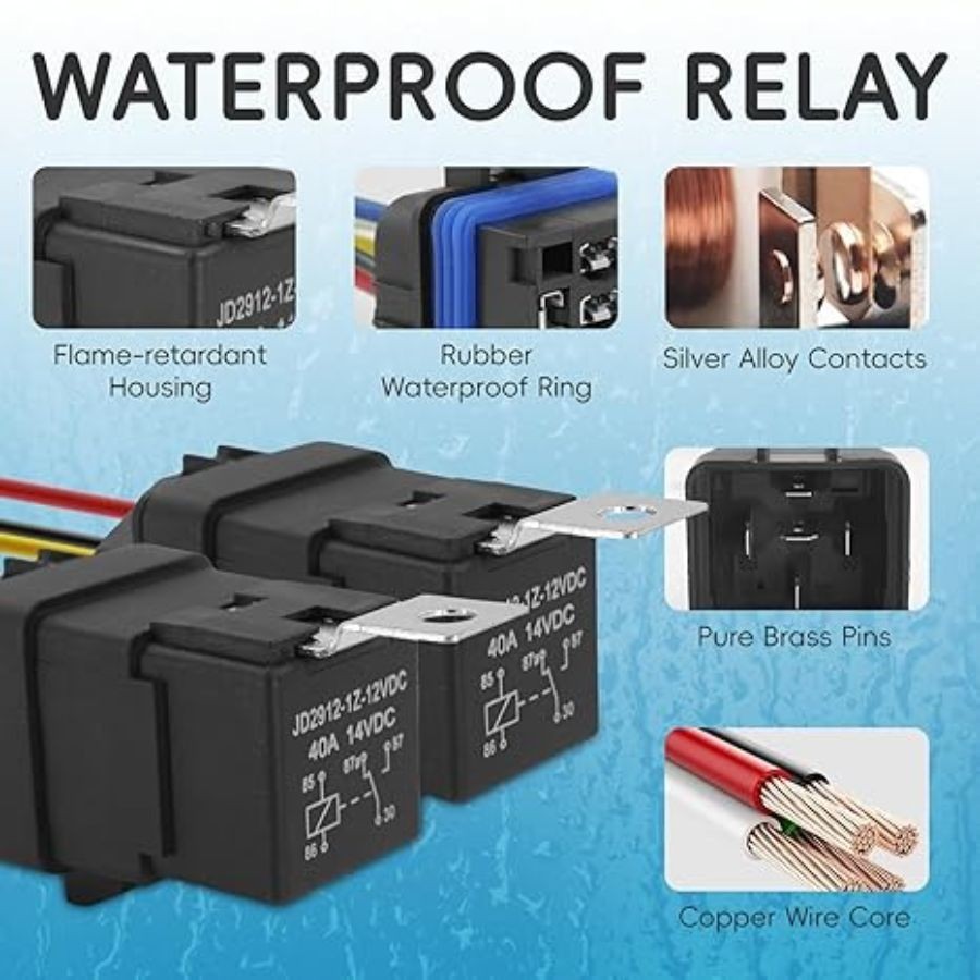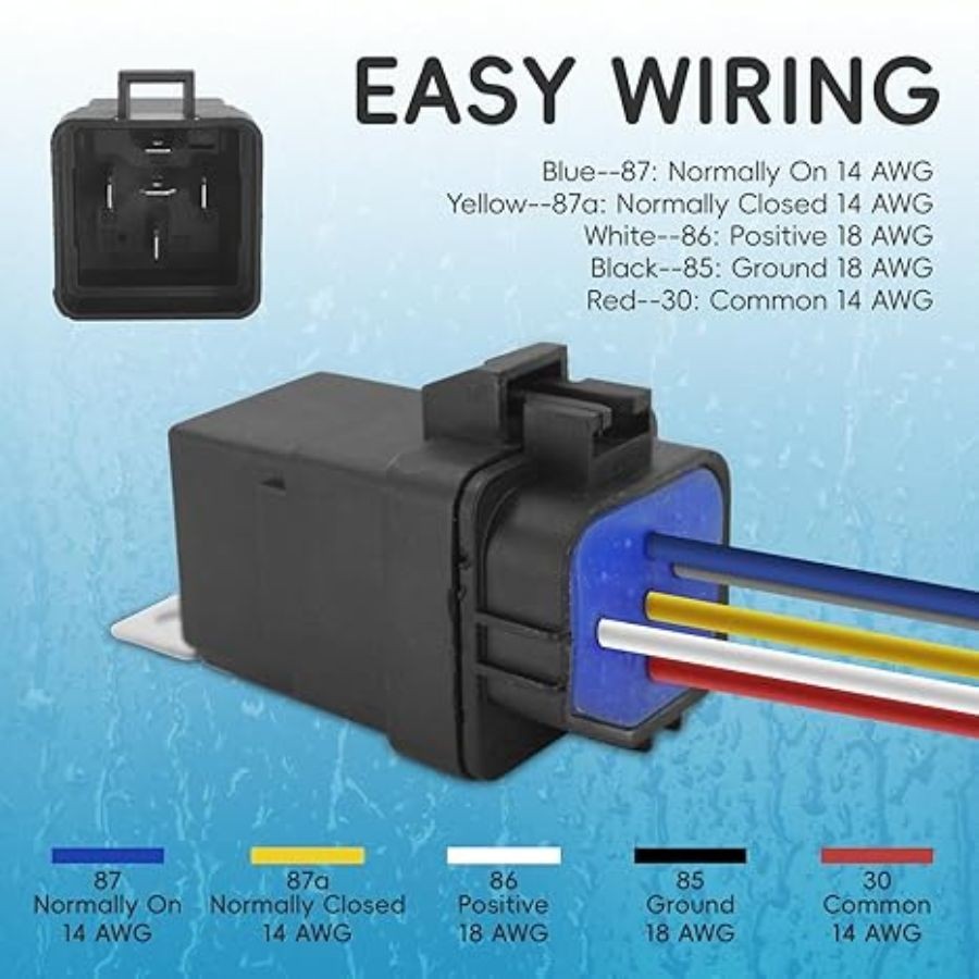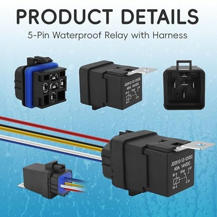 5-Pin Waterproof Relay 40/30 AMP 12V Relay with Harness 12 Volt SPDT Automotive