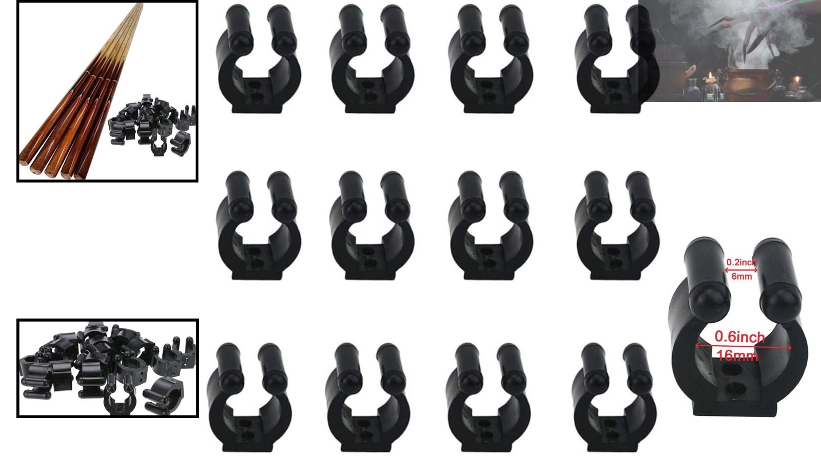 как выглядит 12 Pcs Adjustable Pool Cue Clips Fishing Rod Holders - Durable Black Rack фото