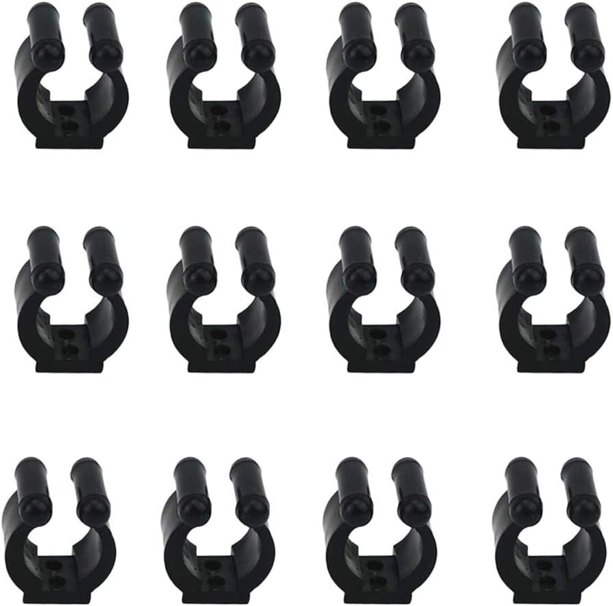 12 Pcs Adjustable Pool Cue Clips Fishing Rod Holders - Durable Black Rack