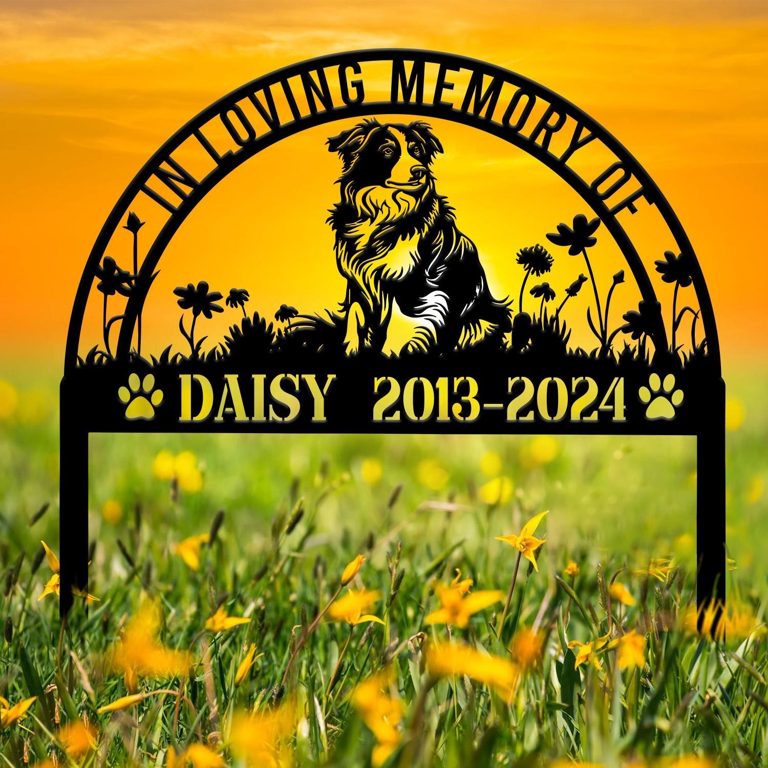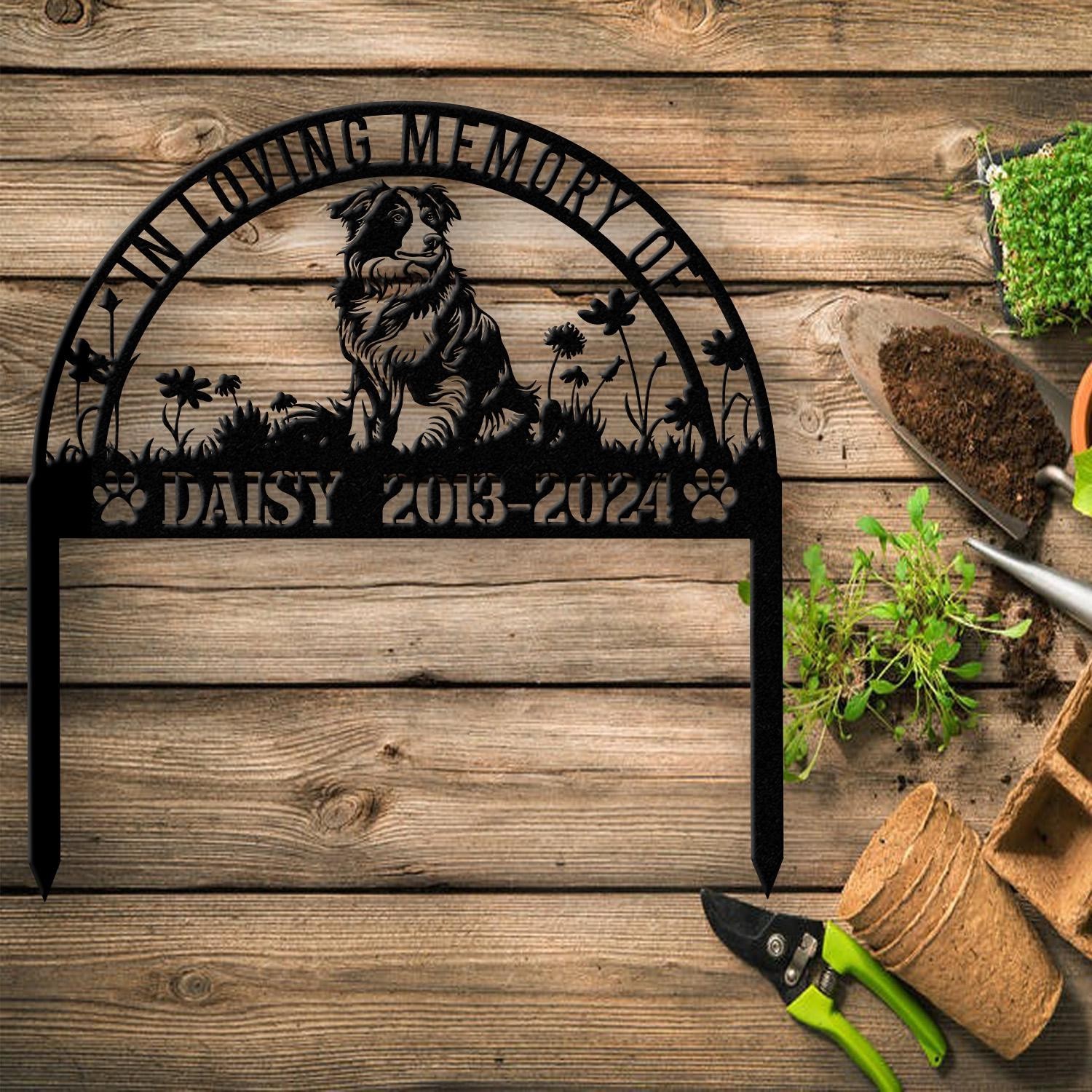 Personalized Australian Shepherd Memorial Stake, Dog Name Sign, Pet Grave Marker