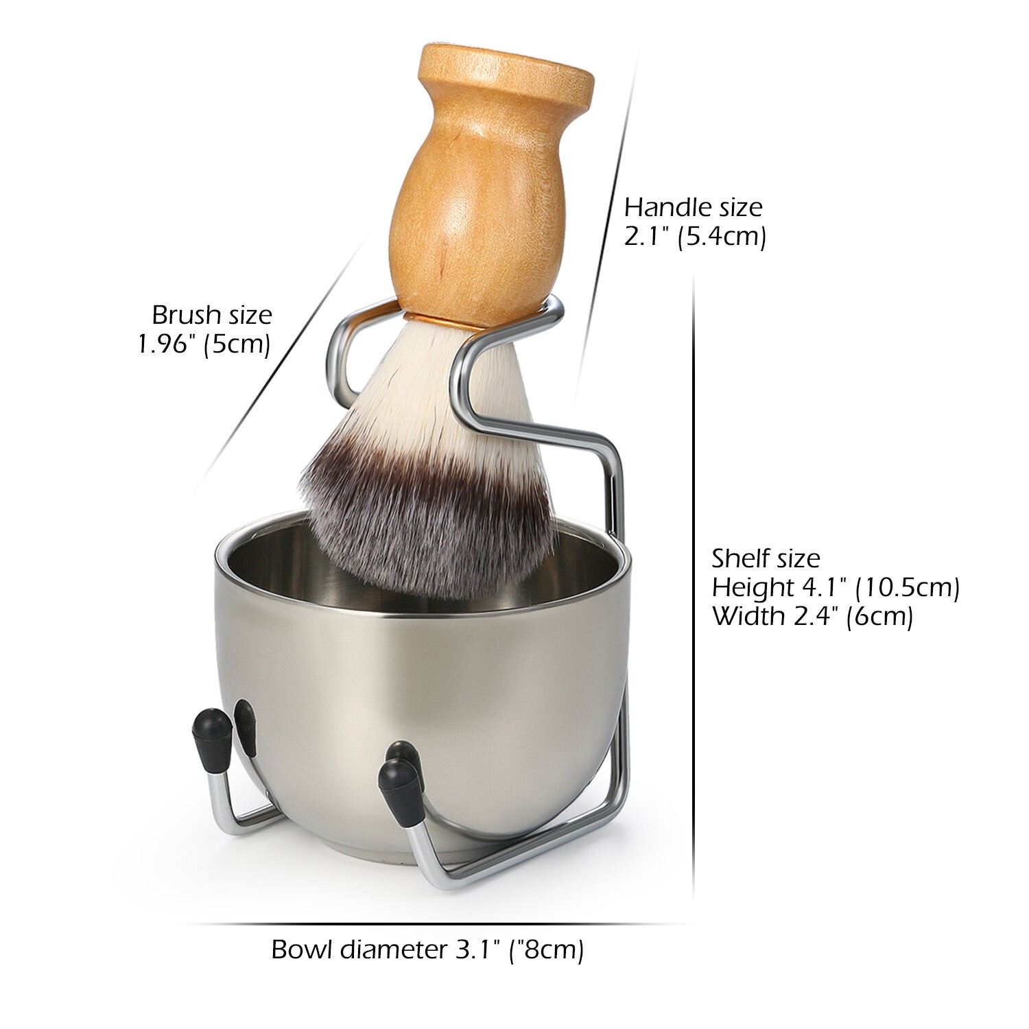 3 in 1 Wooden Handle Badger Synthetic Shaving Brush Stand Holder Mug Bowl Set