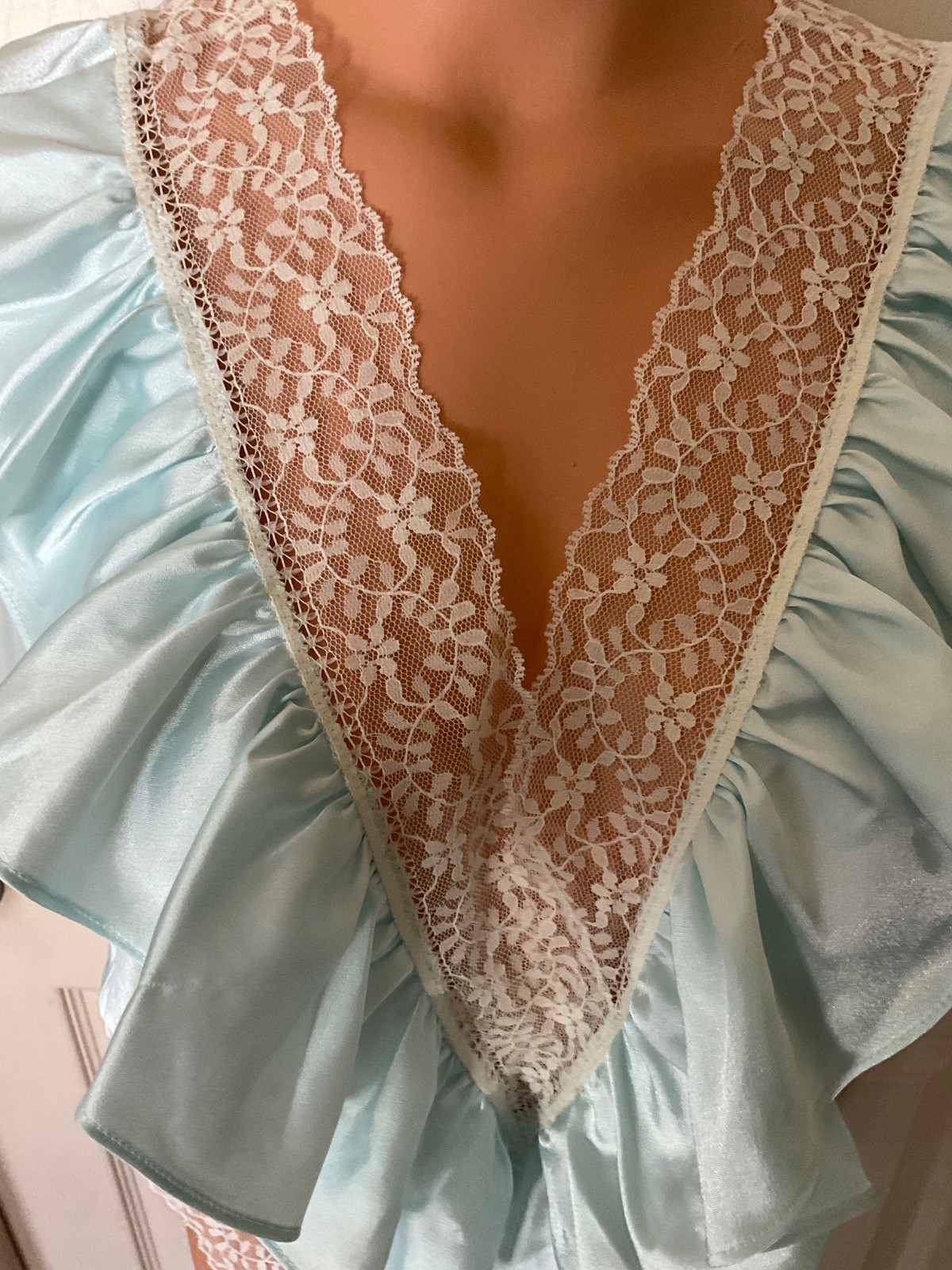 как выглядит Vtg Silky Teddie Ruffles Lace Lingerie Teddy Lily of France Sleepwear Sz M USA фото