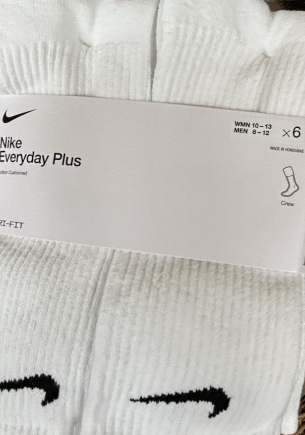 Nike Men's Everyday Plus Crew Socks 6 Pairs White Black Cushioned DRI-FIT Size L
