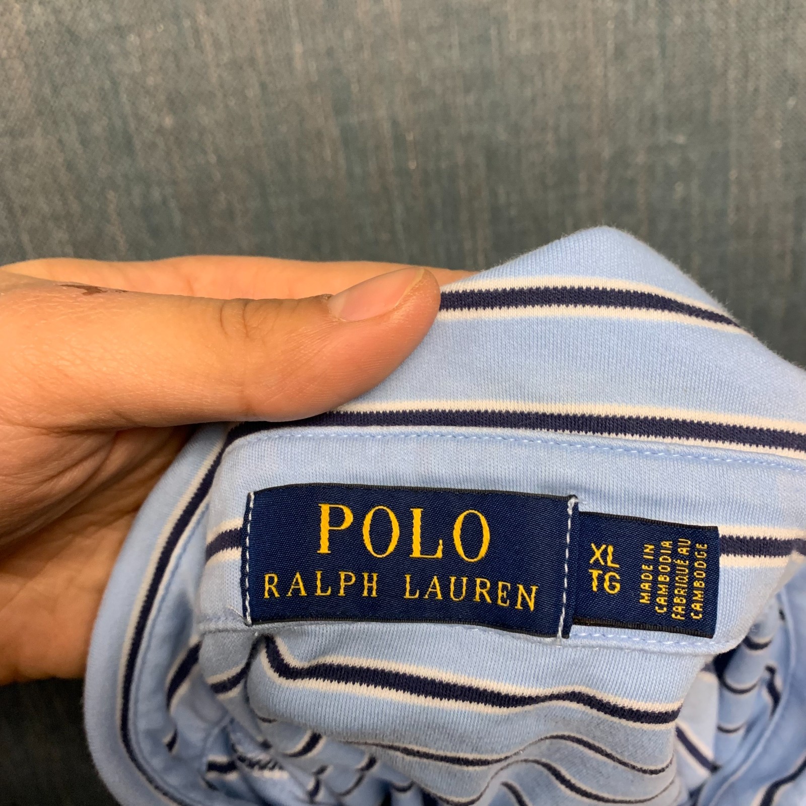 как выглядит Polo Ralph Lauren Mens Polo Shirt Size XL Blue Striped Short Sleeve Cotton Top фото
