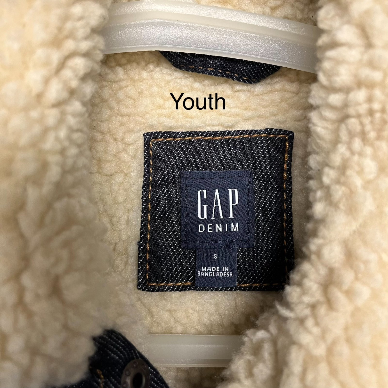 как выглядит Gap Denim Youth Trucker Jacket Size S Blue Sherpa Lined Dark Wash Warm Coat фото