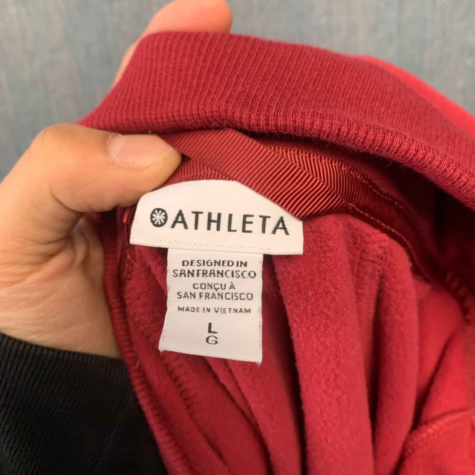 как выглядит Athleta Womens Hoodie Jogger Set Size L M Red Full Zip Fleece Triumph Outfit фото