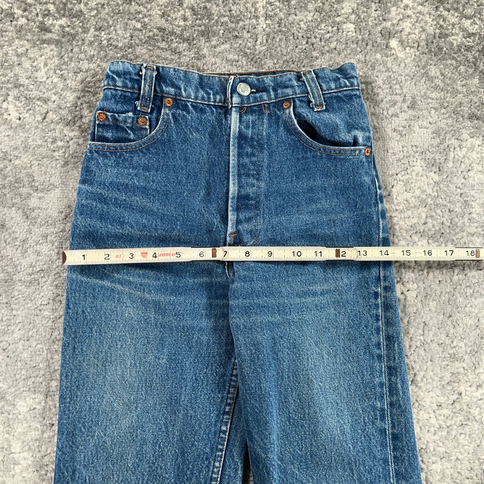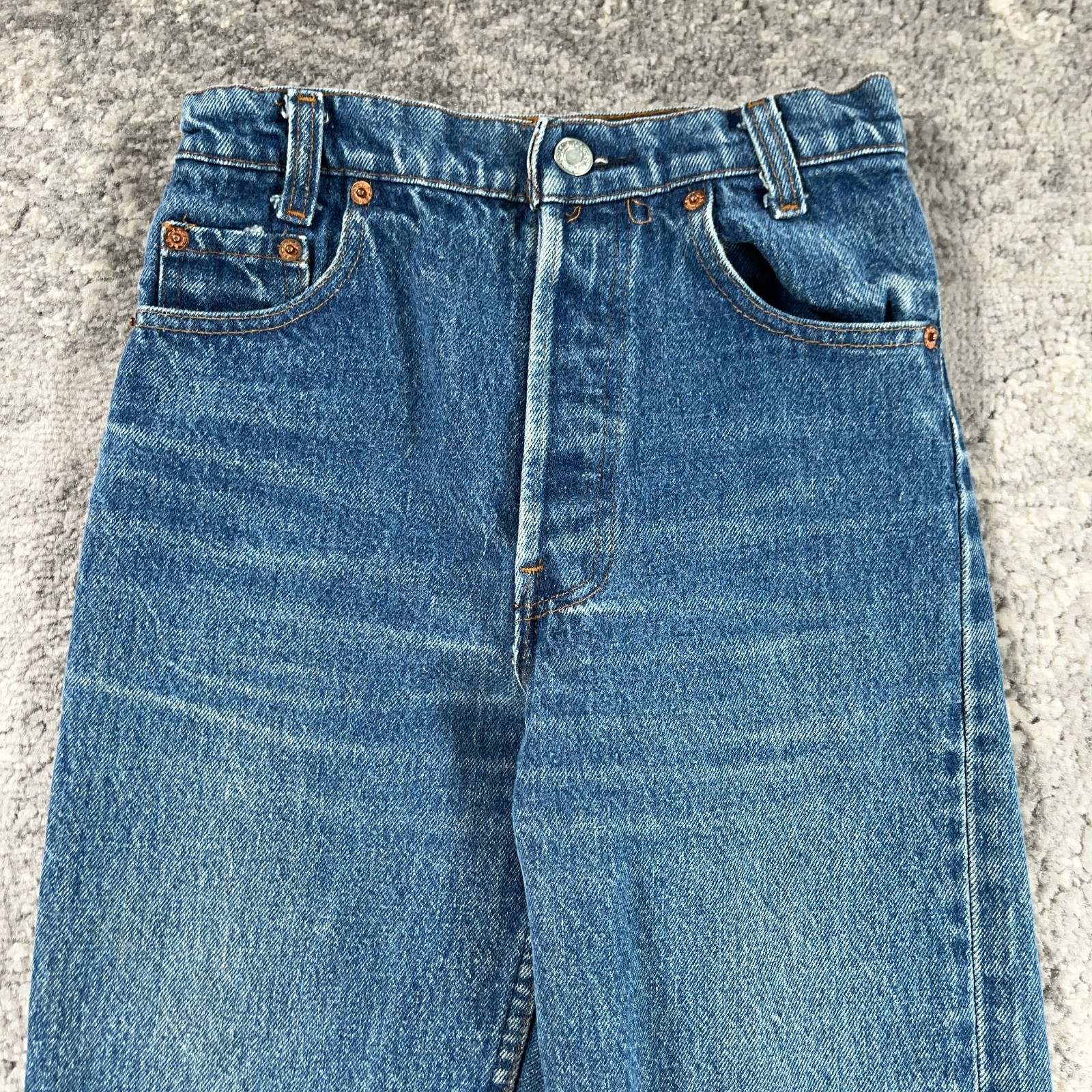 как выглядит VTG Levis 501 Jeans Boys Actual 22 X 31 Blue Straight Button Fly Made In USA 80s фото