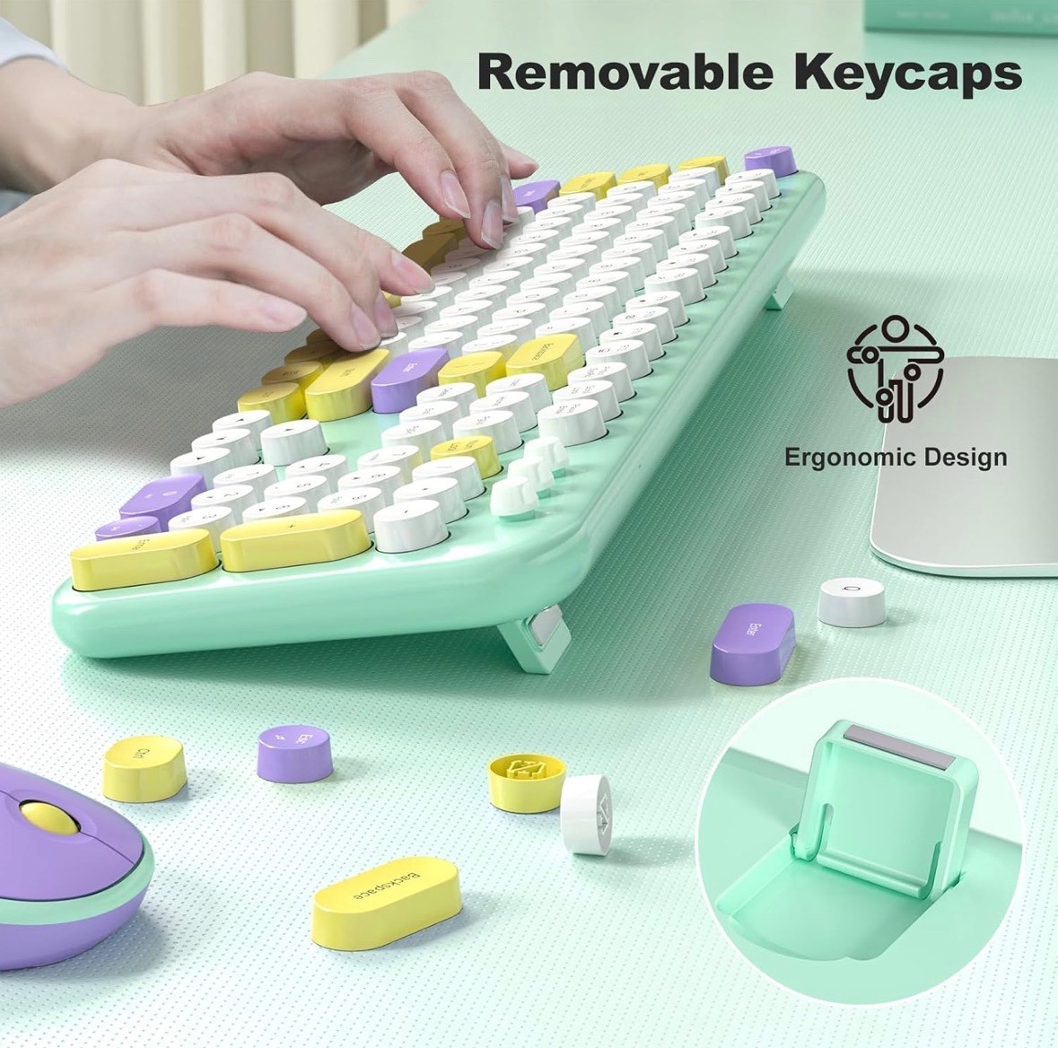 Wireless Keyboard and Mouse Combo, Cute Keyboard Full Size and Wireless Mouse.