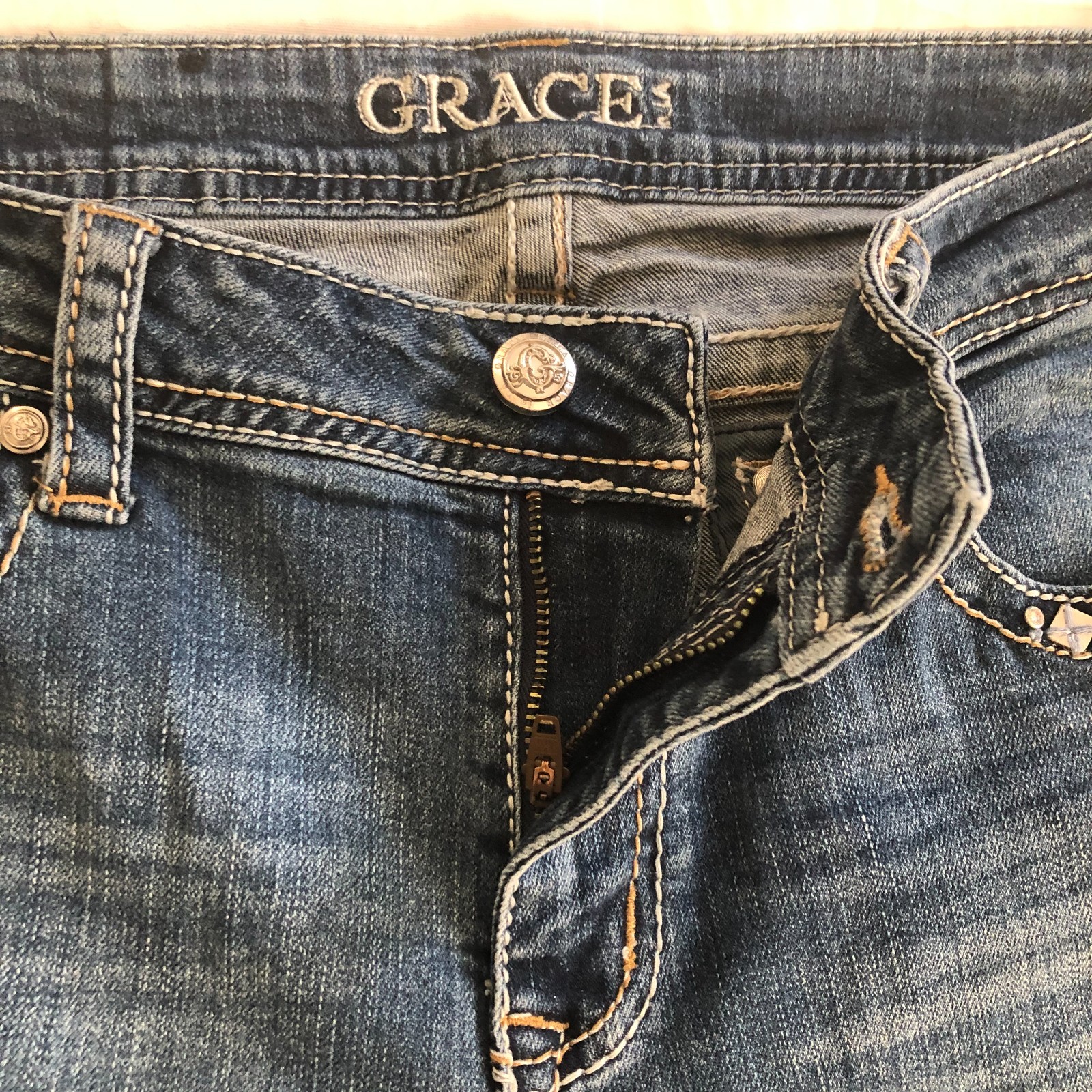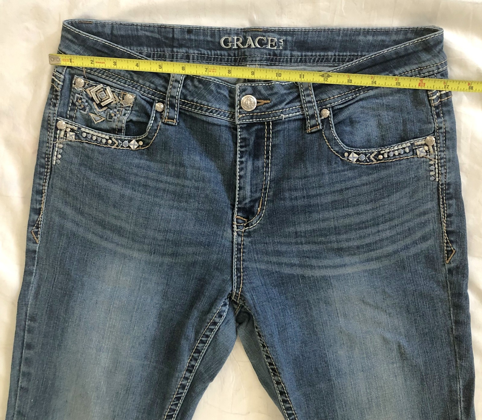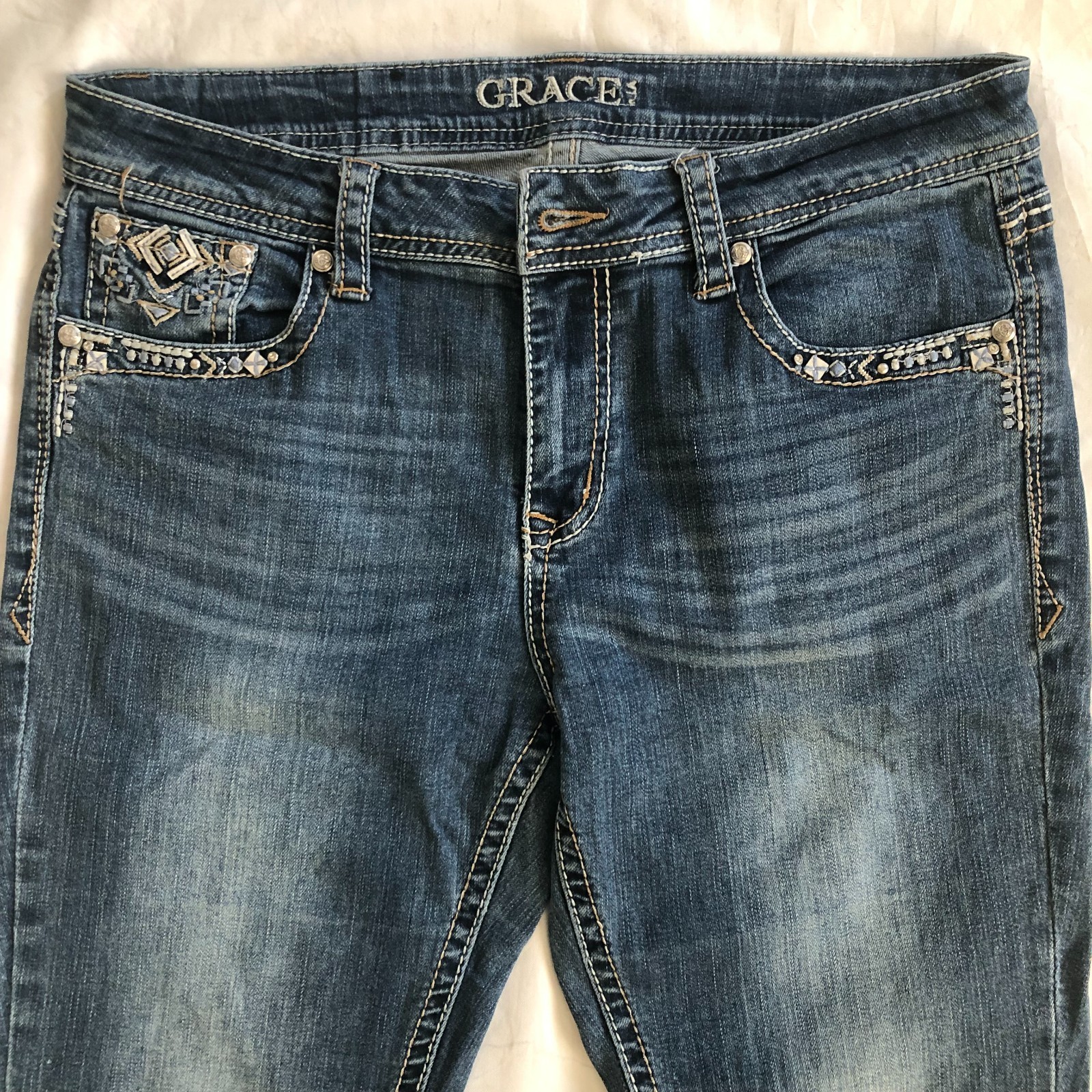 Grace in LA Embellished Bootcut Jeans Blue Western Cowgirl Bohemian Size 30