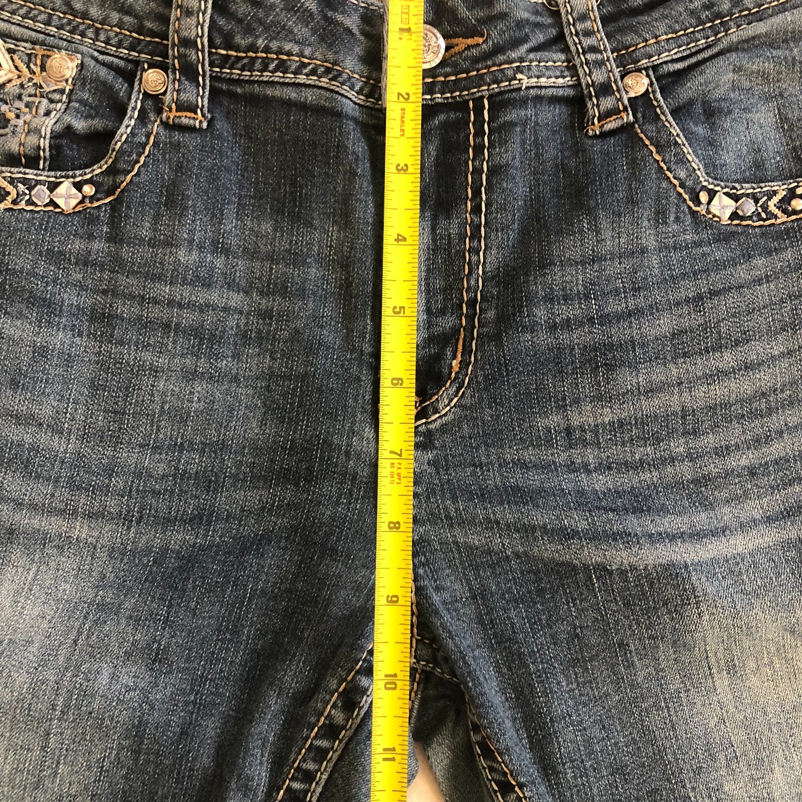 как выглядит Grace in LA Embellished Bootcut Jeans Blue Western Cowgirl Bohemian Size 30 фото