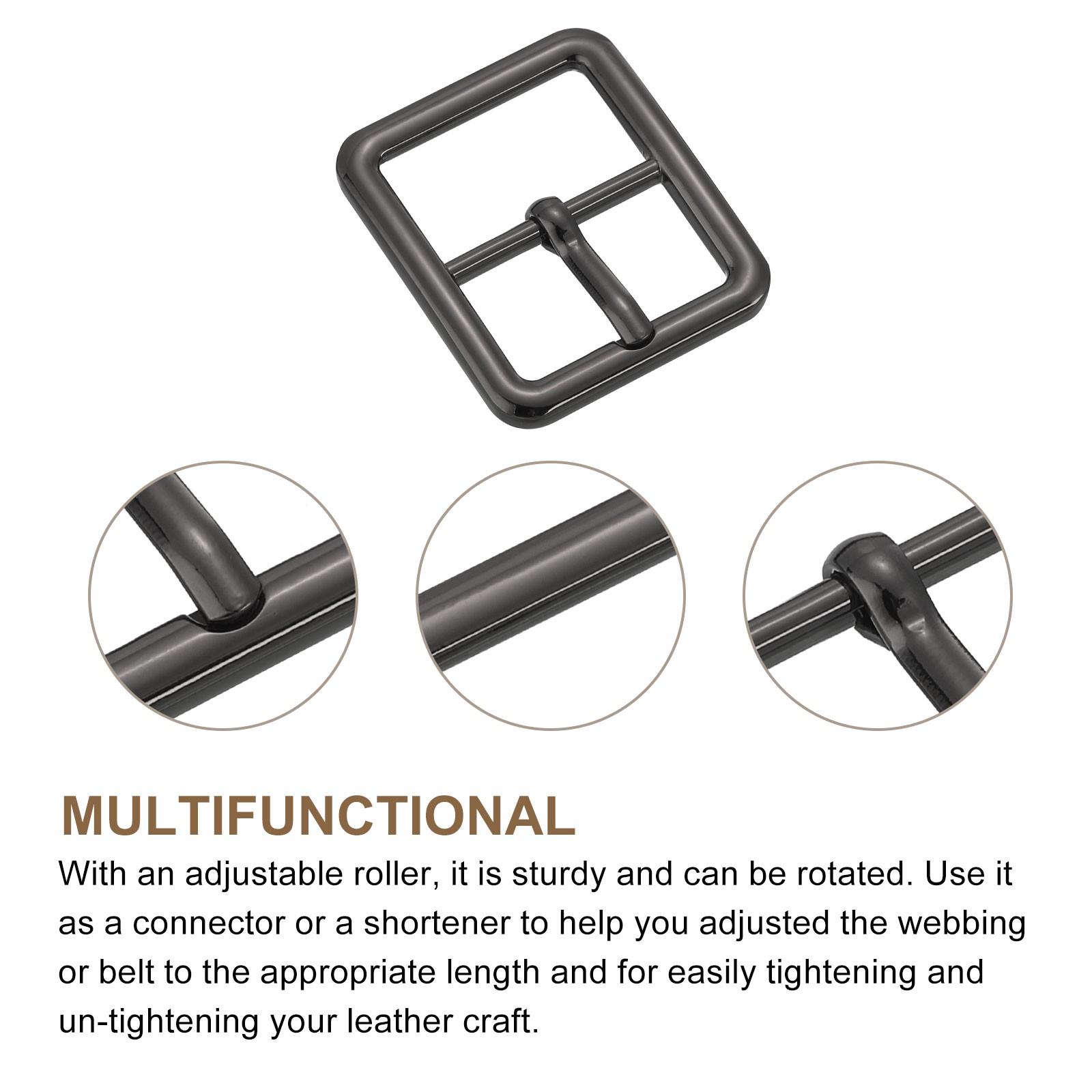 4 x 1 Single Prong Belt Buckle Square Center Bar Buckles for Belt Black