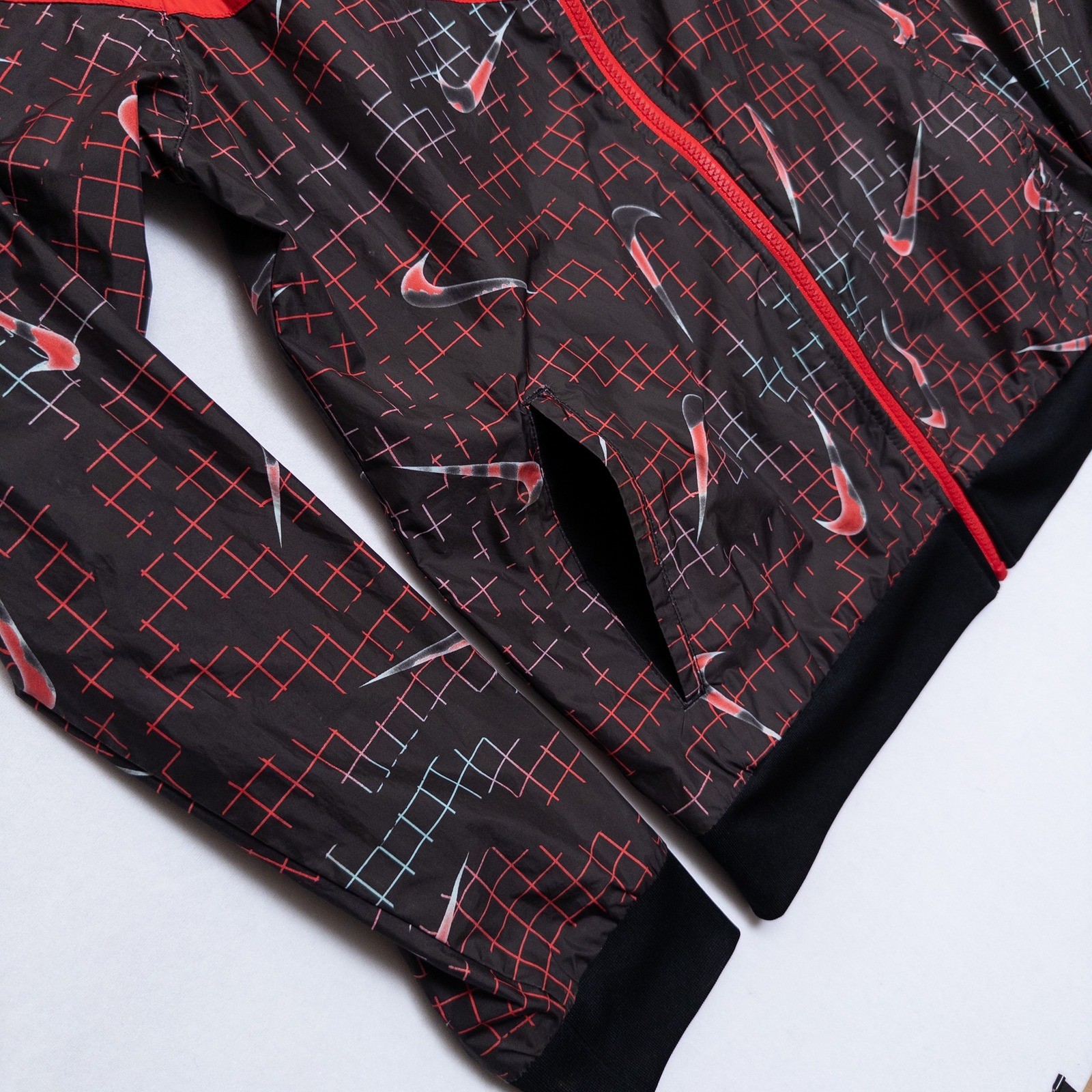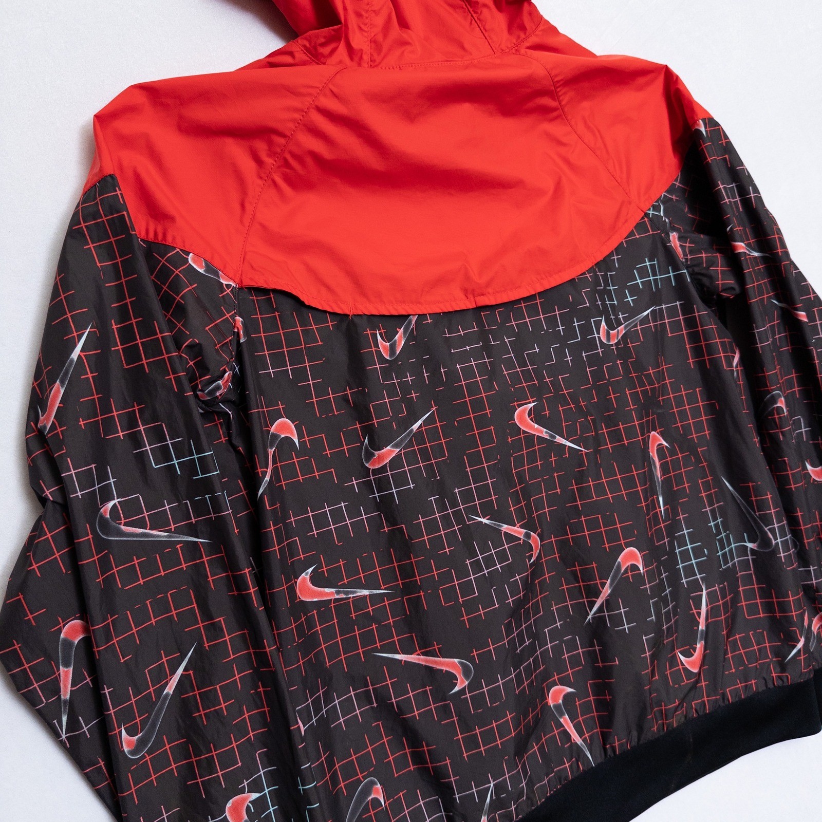Nike Windrunner Jacket Boys XL Red Black Grid Swoosh Hooded