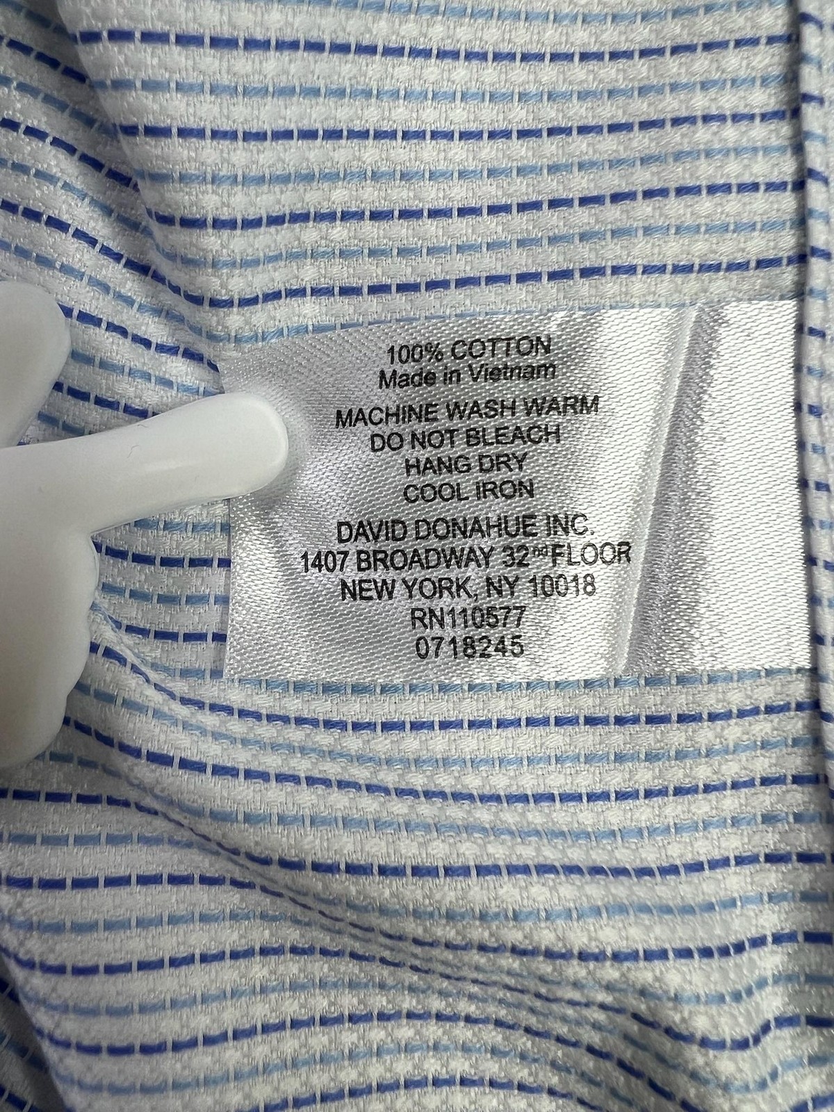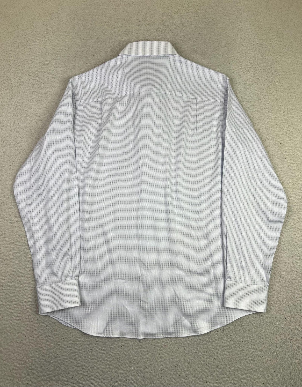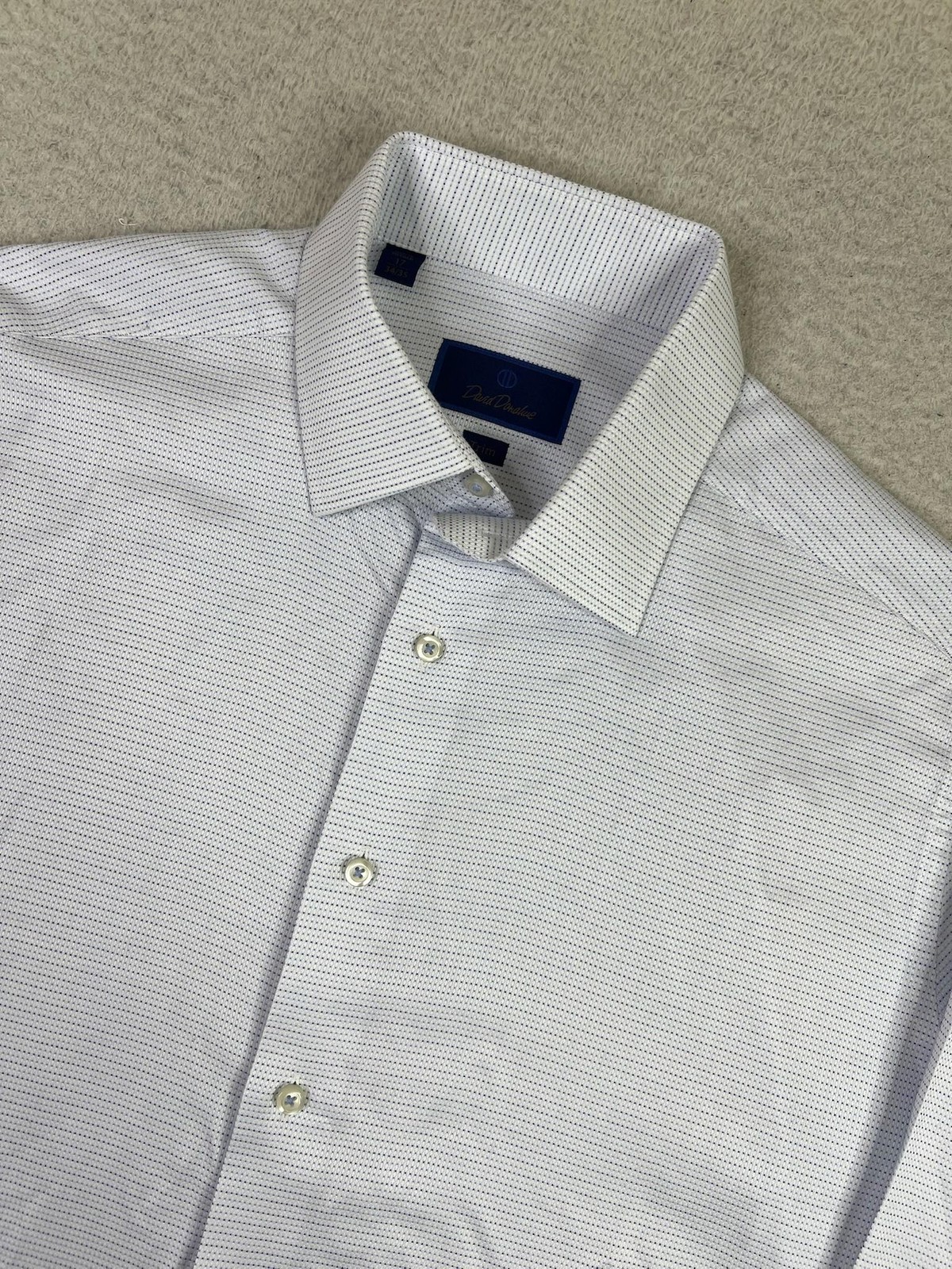 как выглядит David Donahue Dress Shirt Mens 17 34/35 White Check Trim Fit Long Sleeve Cotton фото
