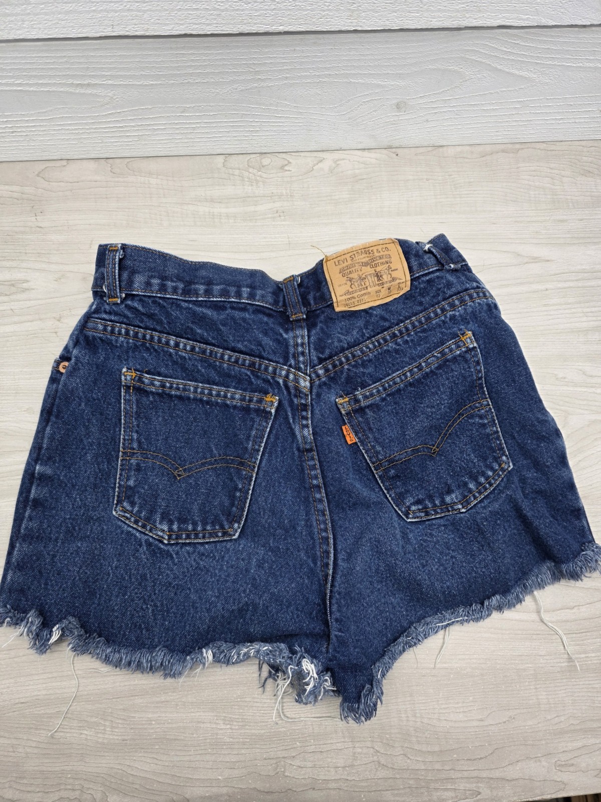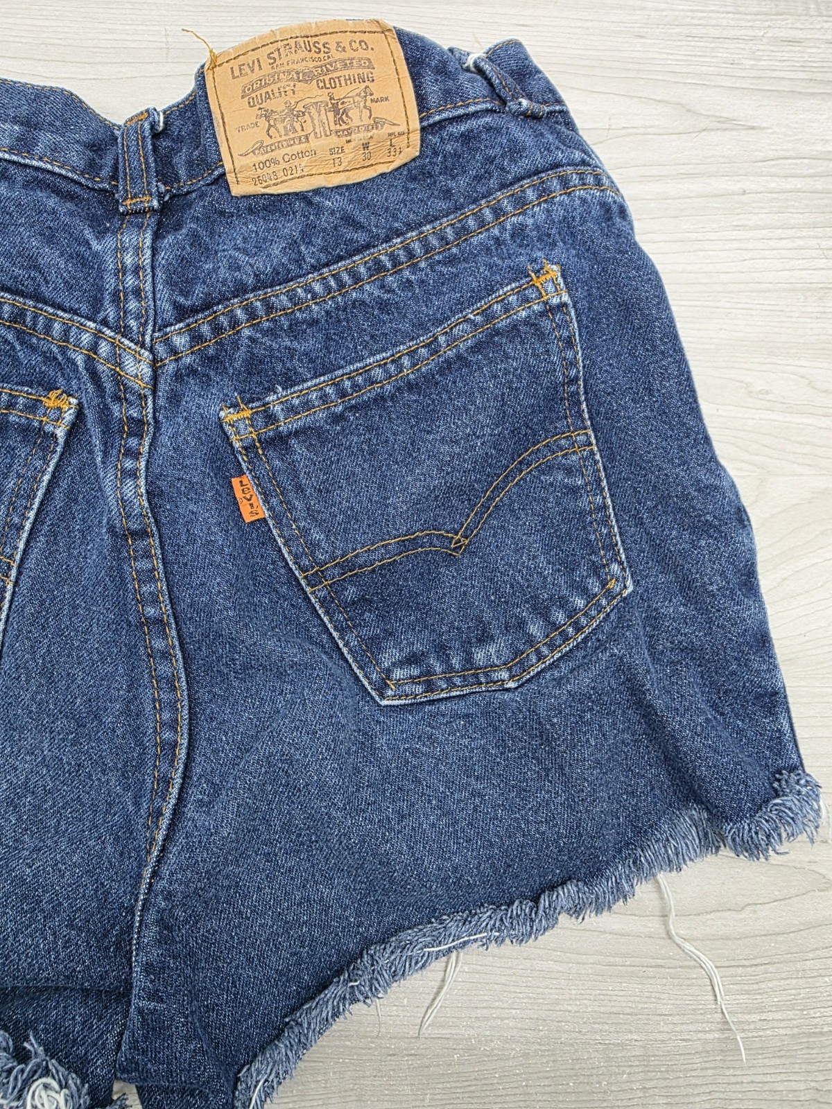 как выглядит Vintage Levi Strauss Cutoff Shorts Size 13 Orange Tab Denim Girls Juniors USA фото