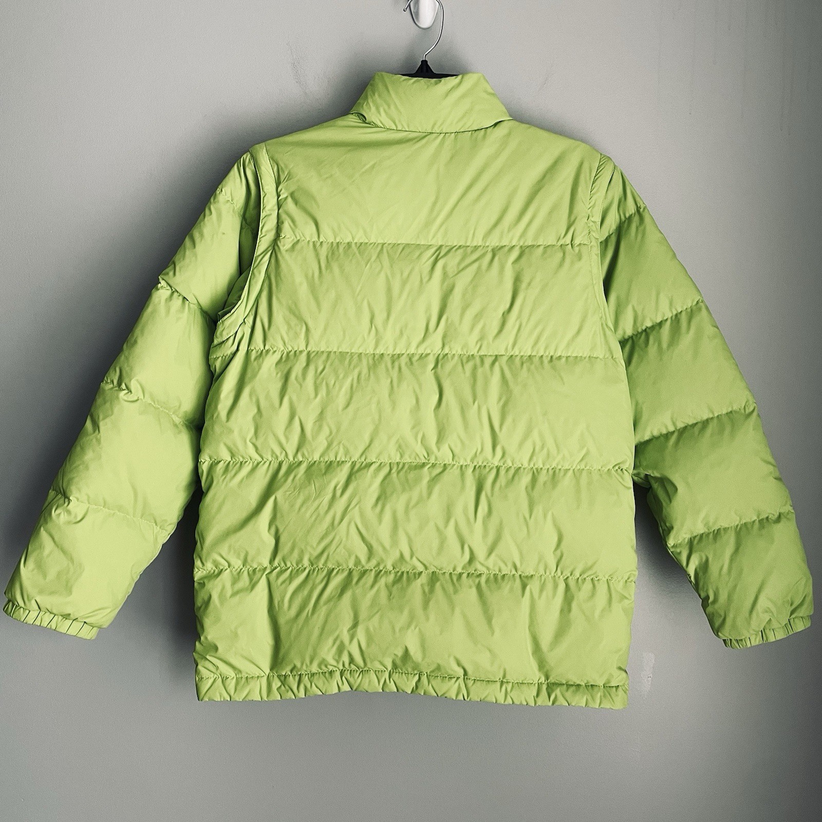 Lands' End Down Puffer Jacket Removable Sleeves Boys Youth L 14-16 Green