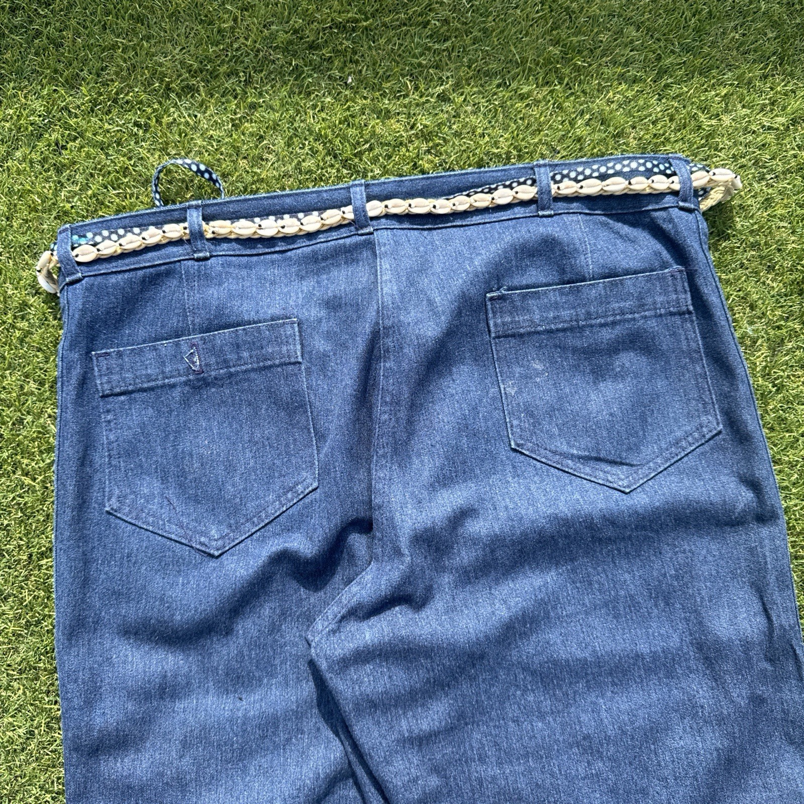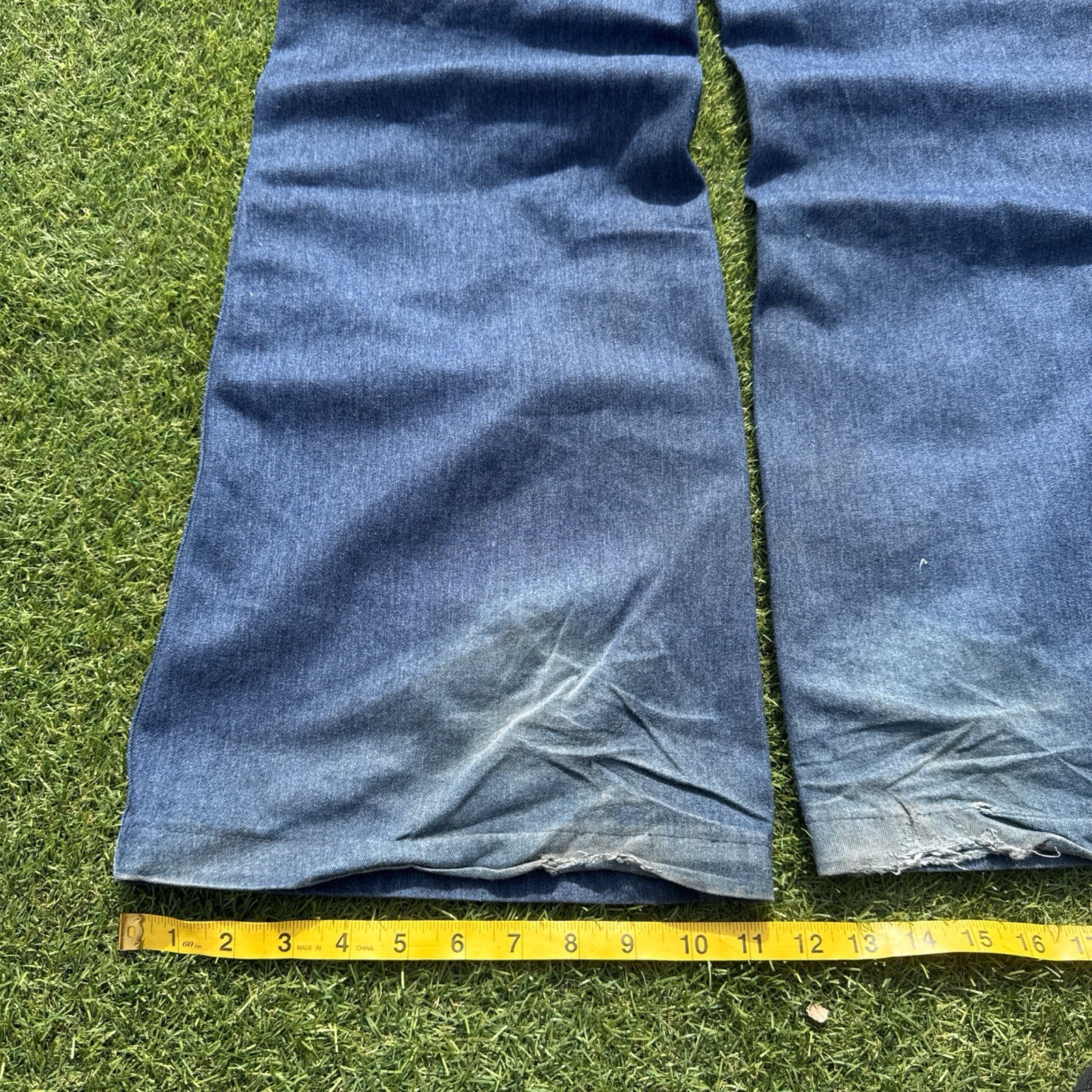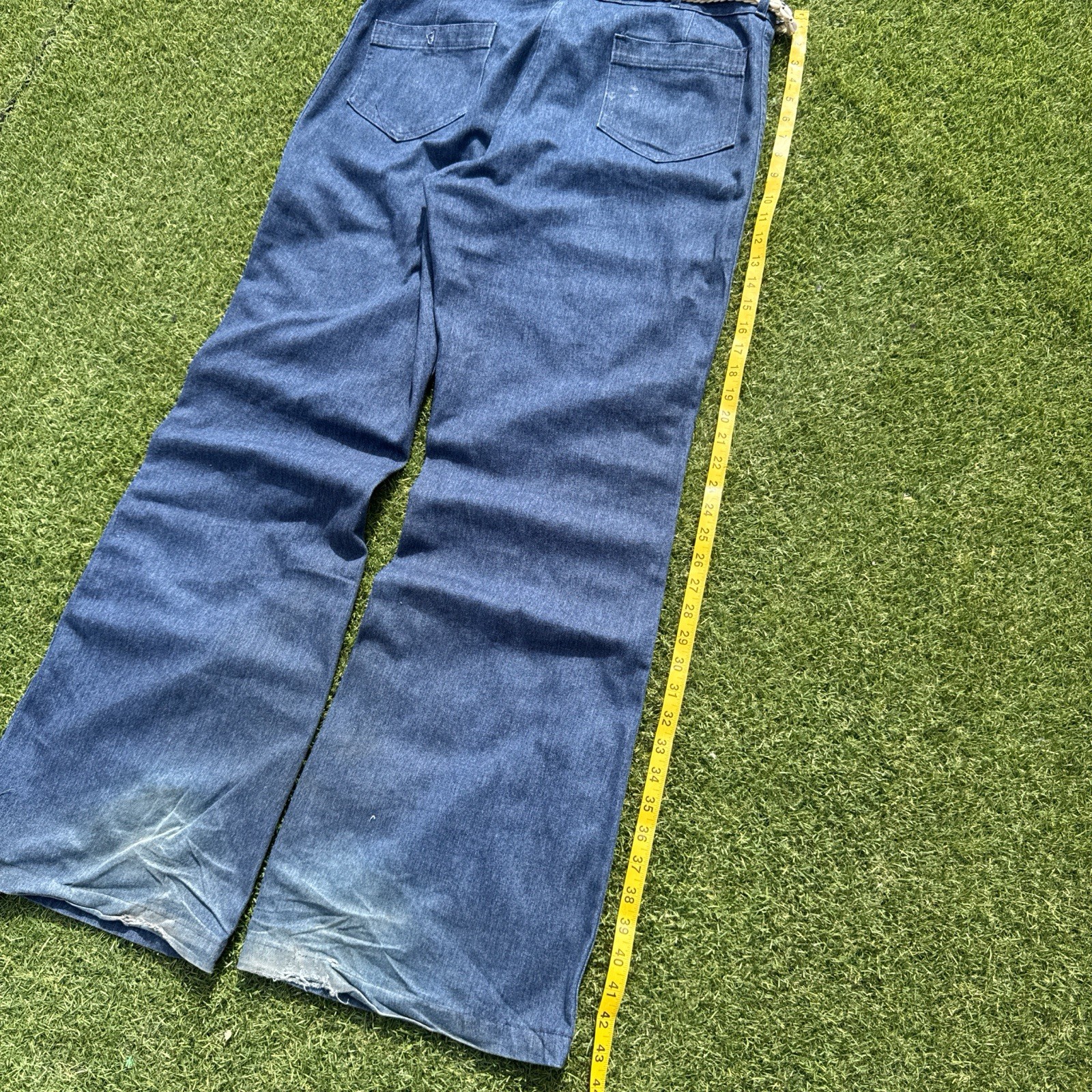 как выглядит 1970s Seafarer Bellbottom Jeans 36x34 Raw Navy Denim; Talon Zipper; Distressed фото