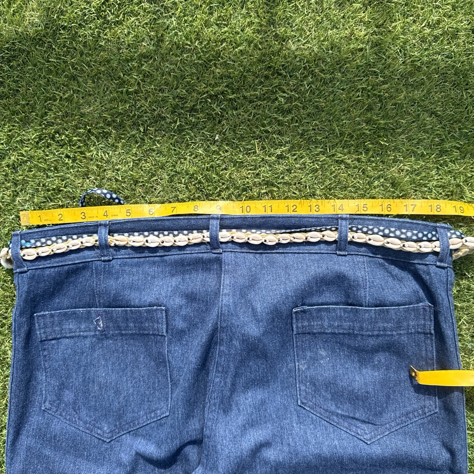 1970s Seafarer Bellbottom Jeans 36x34 Raw Navy Denim; Talon Zipper; Distressed