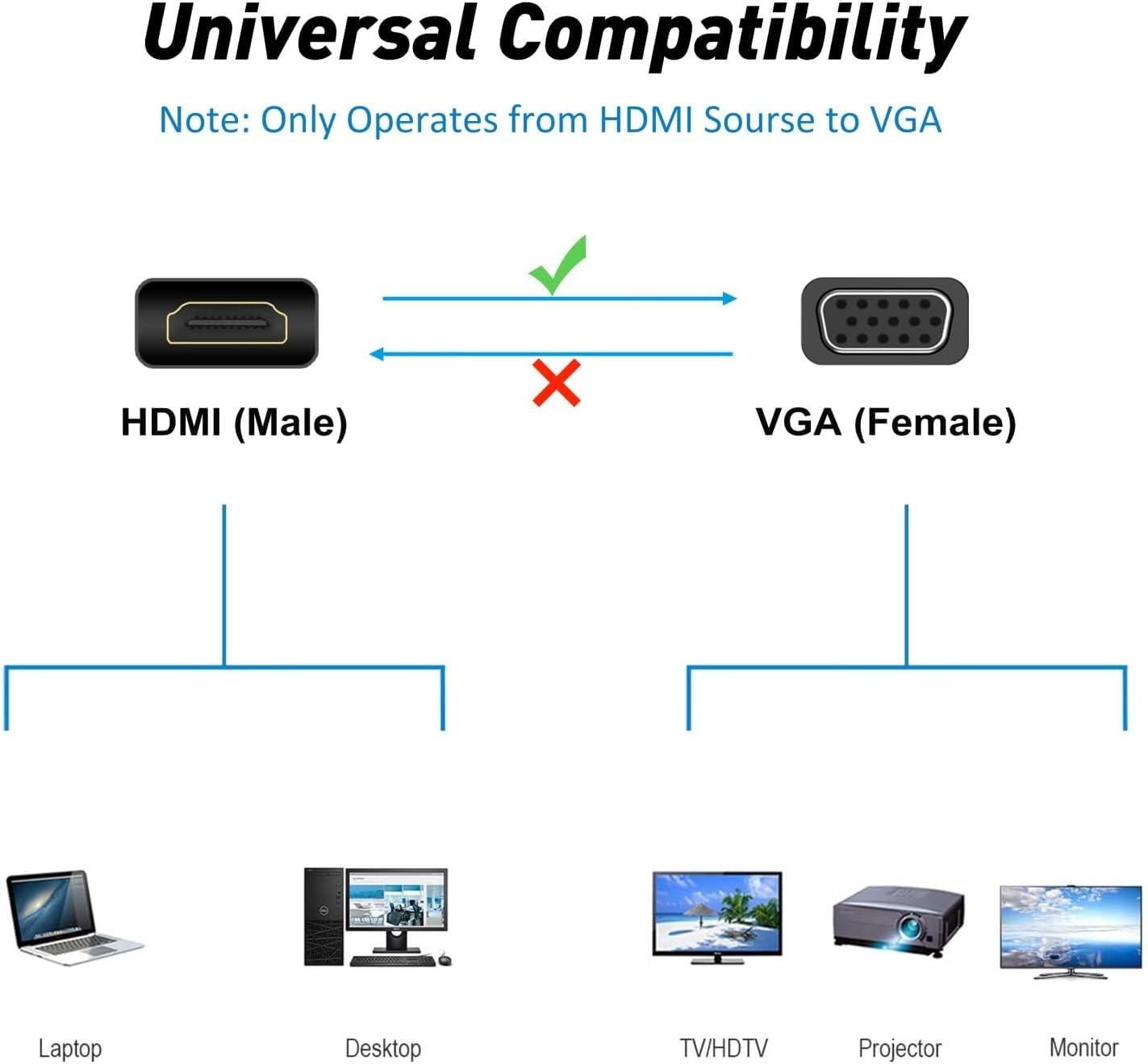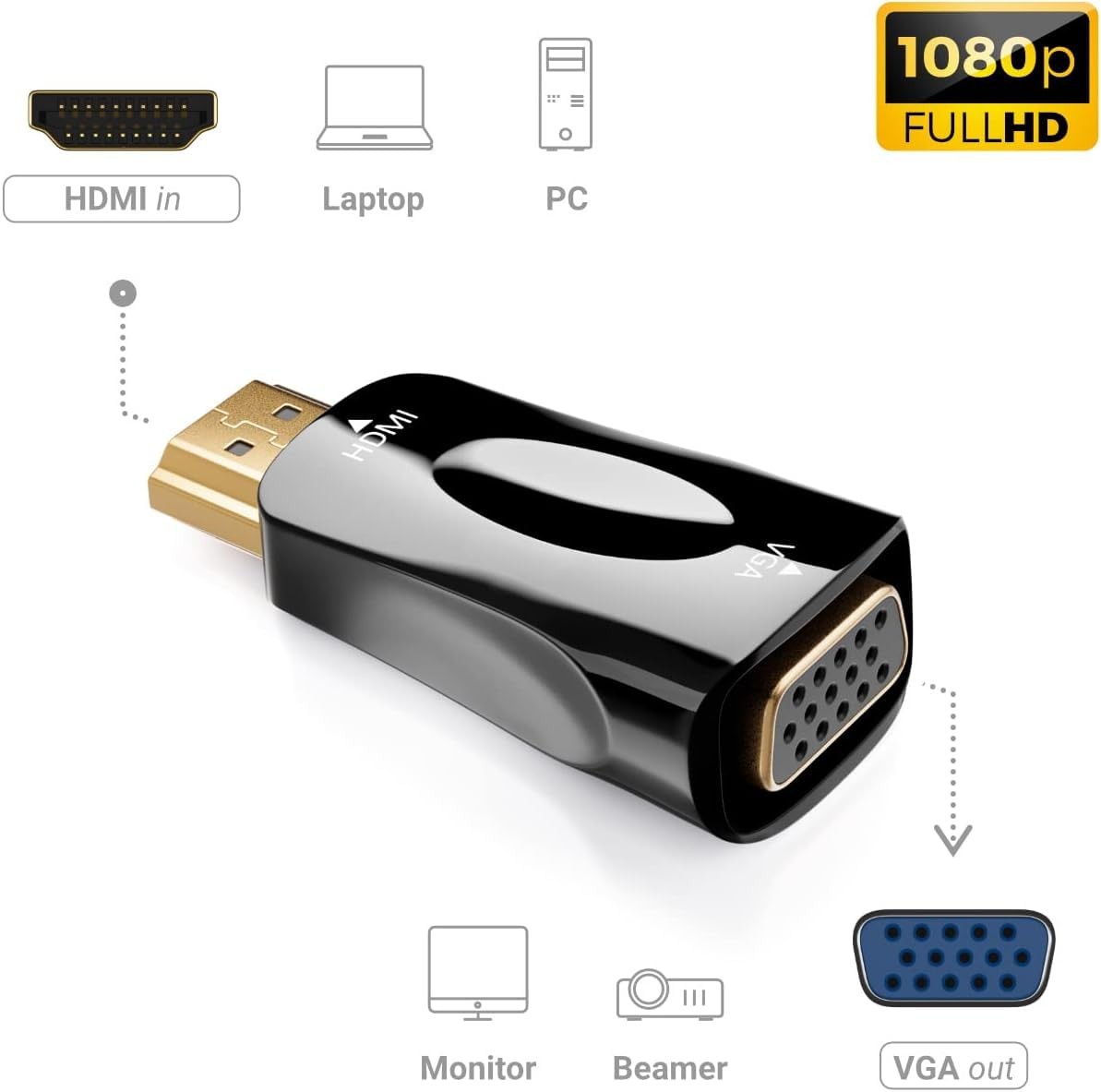 HDMI to VGA Adapter Converter mini, 1080P Male Female Cord for Black