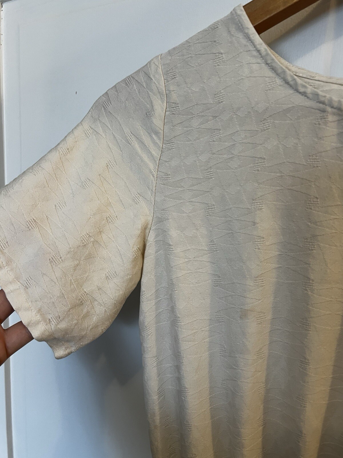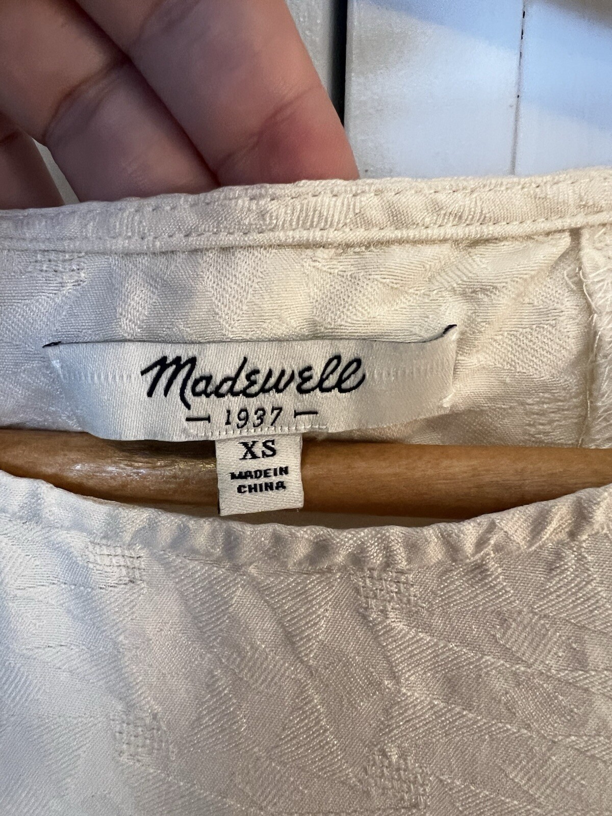 Madewell Dress Women's XS Graphic Print Cream Short Sleeve Silk Mini Open Back