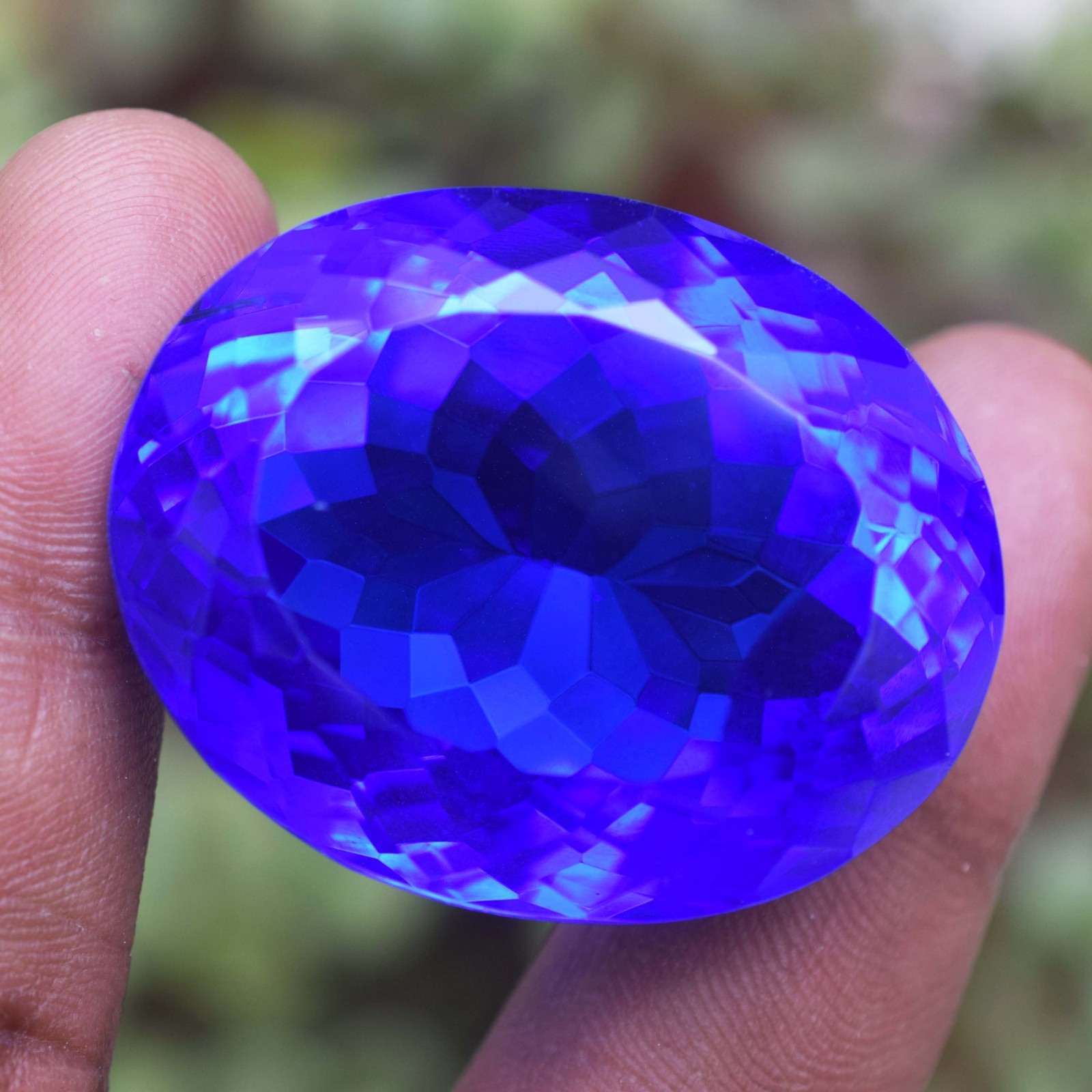 как выглядит 198.90 Ct Huge D Block Blue Tanzanite Oval Cut Flawless Certified Loose Gemstone фото