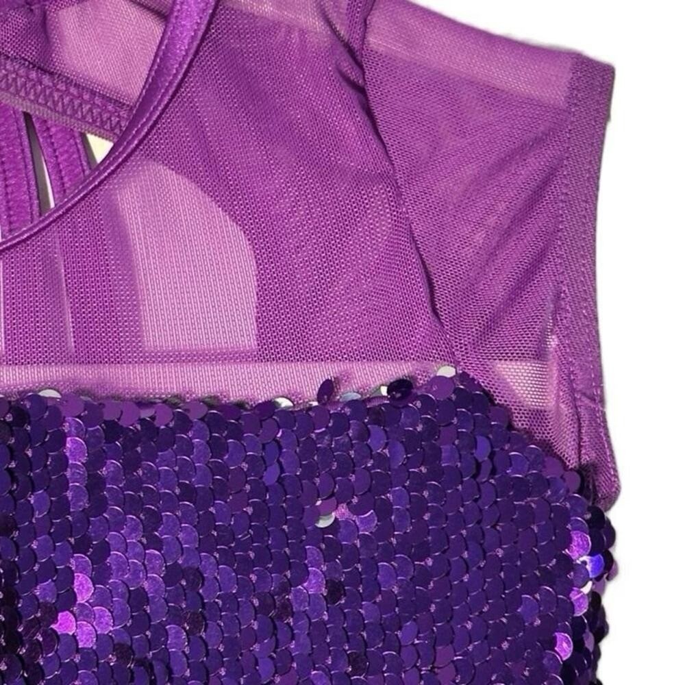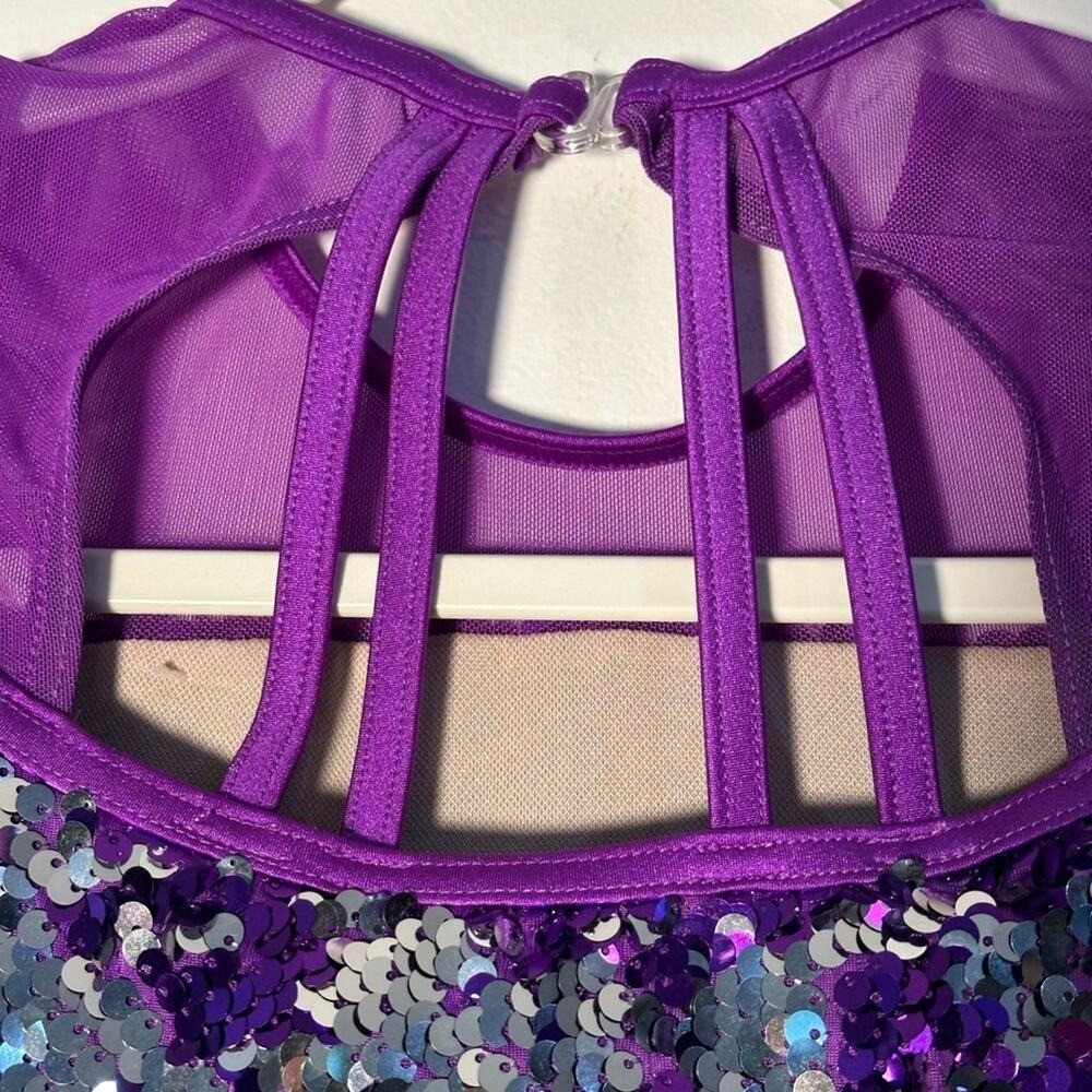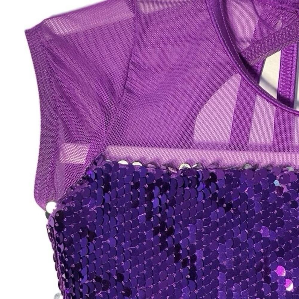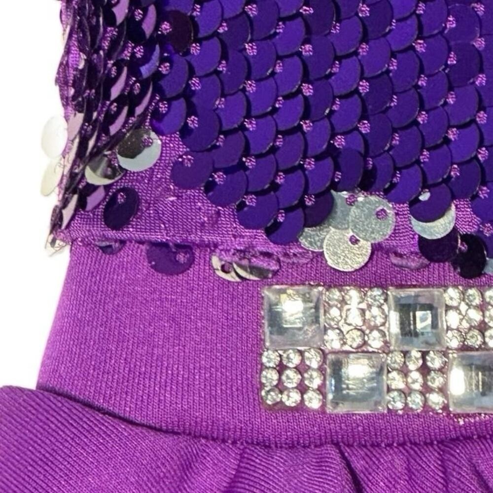 как выглядит Weissman Purple Sequin Kids tiered dance dress Costume with small flaw Size IC фото