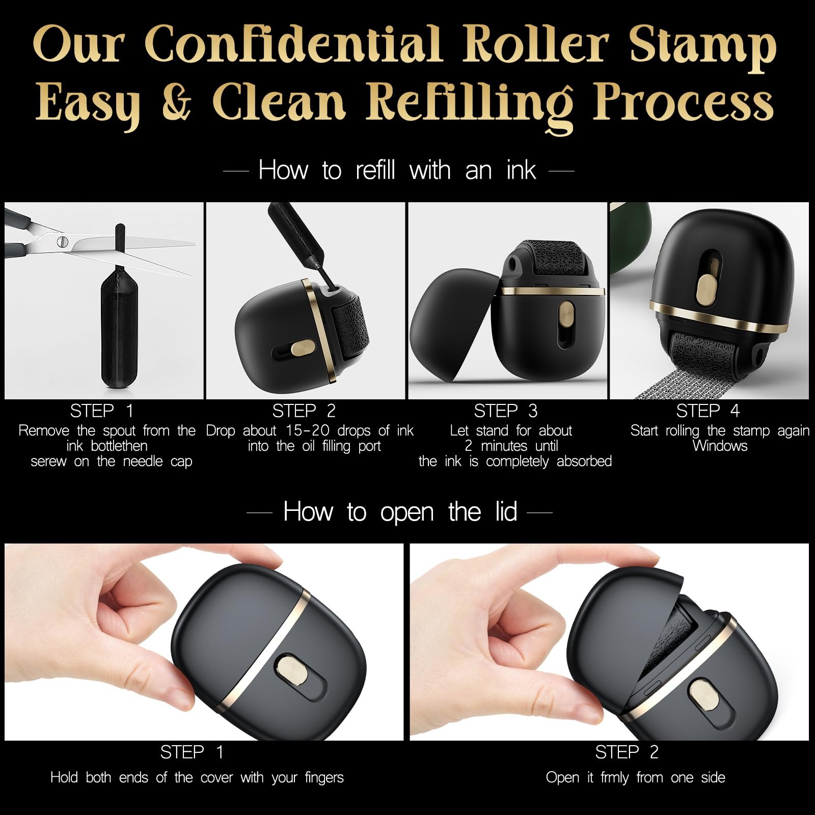 Identity Protection Roller Stamps 2 Pack - Confidential Roller Stamp with 4 R...