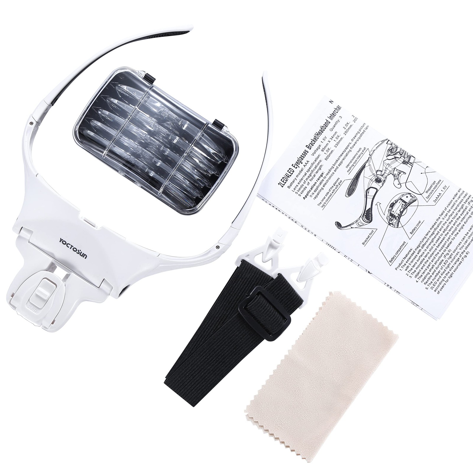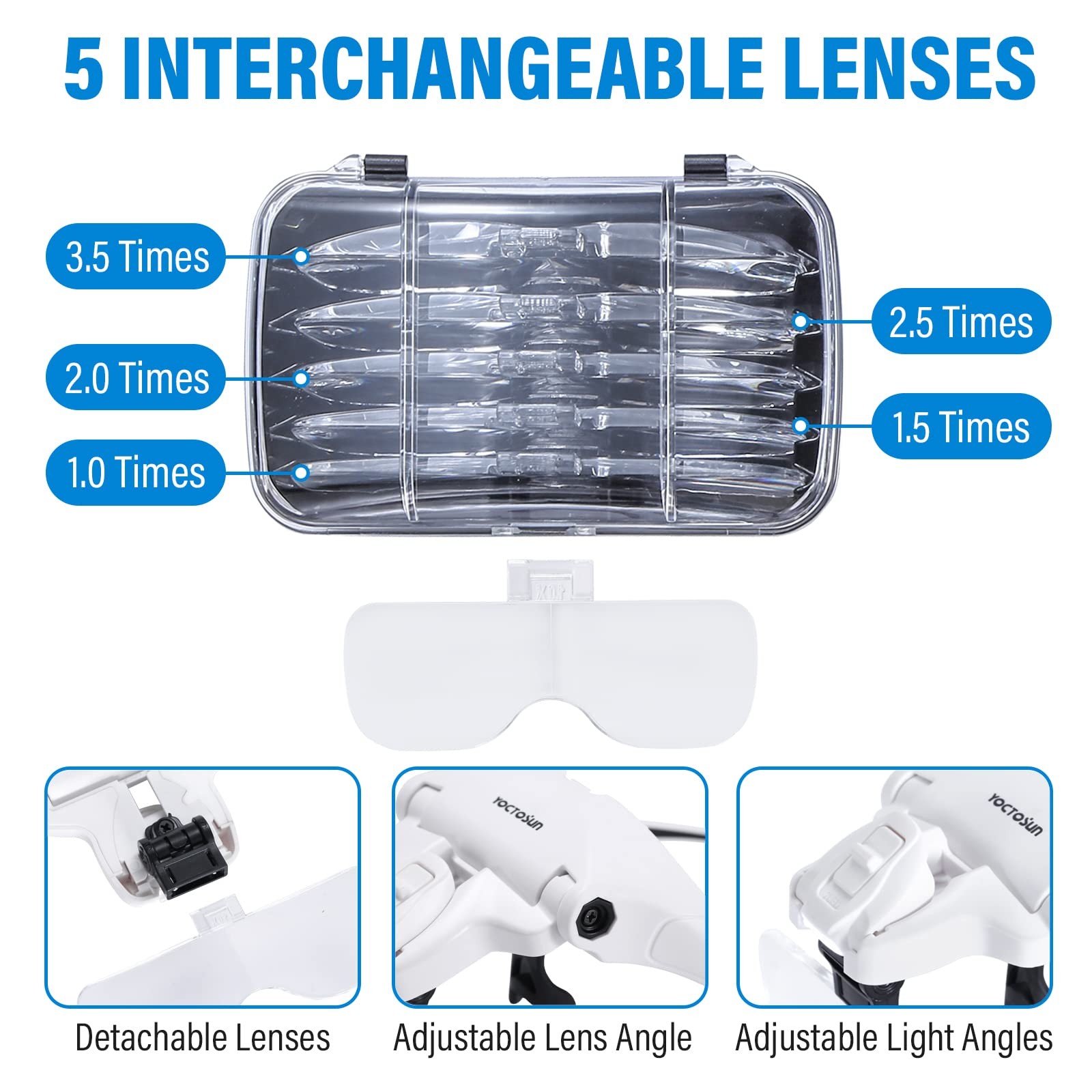 Head Magnifying Visor with 4 Lights and 5 Detachable Lenses 1X, 1.5X, 2X, 2.5...