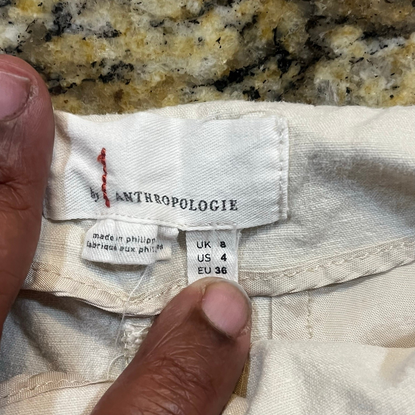 как выглядит Anthropologie White Wide Leg Crop Pants Button Hem Linen Blend Women s 4 Cropped фото