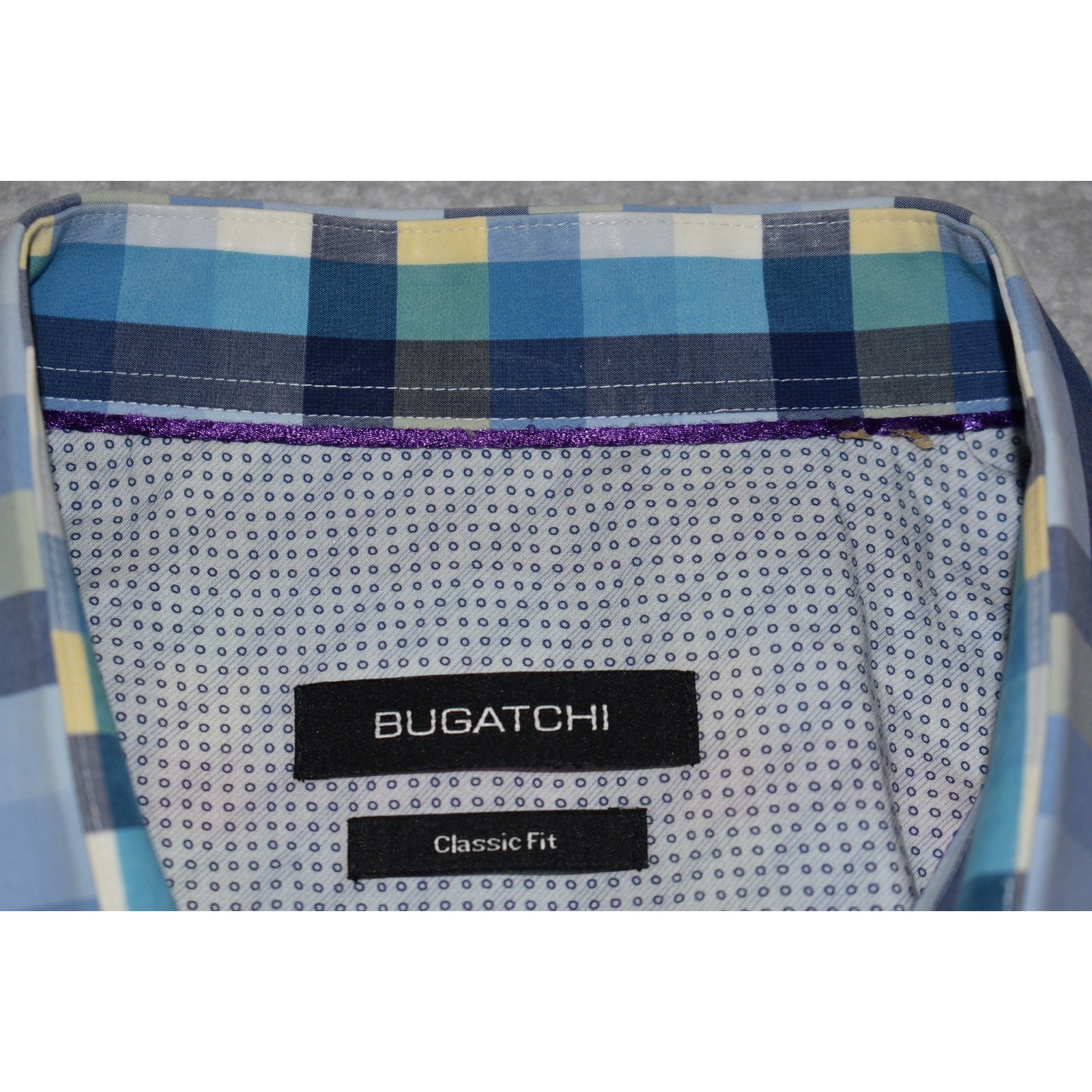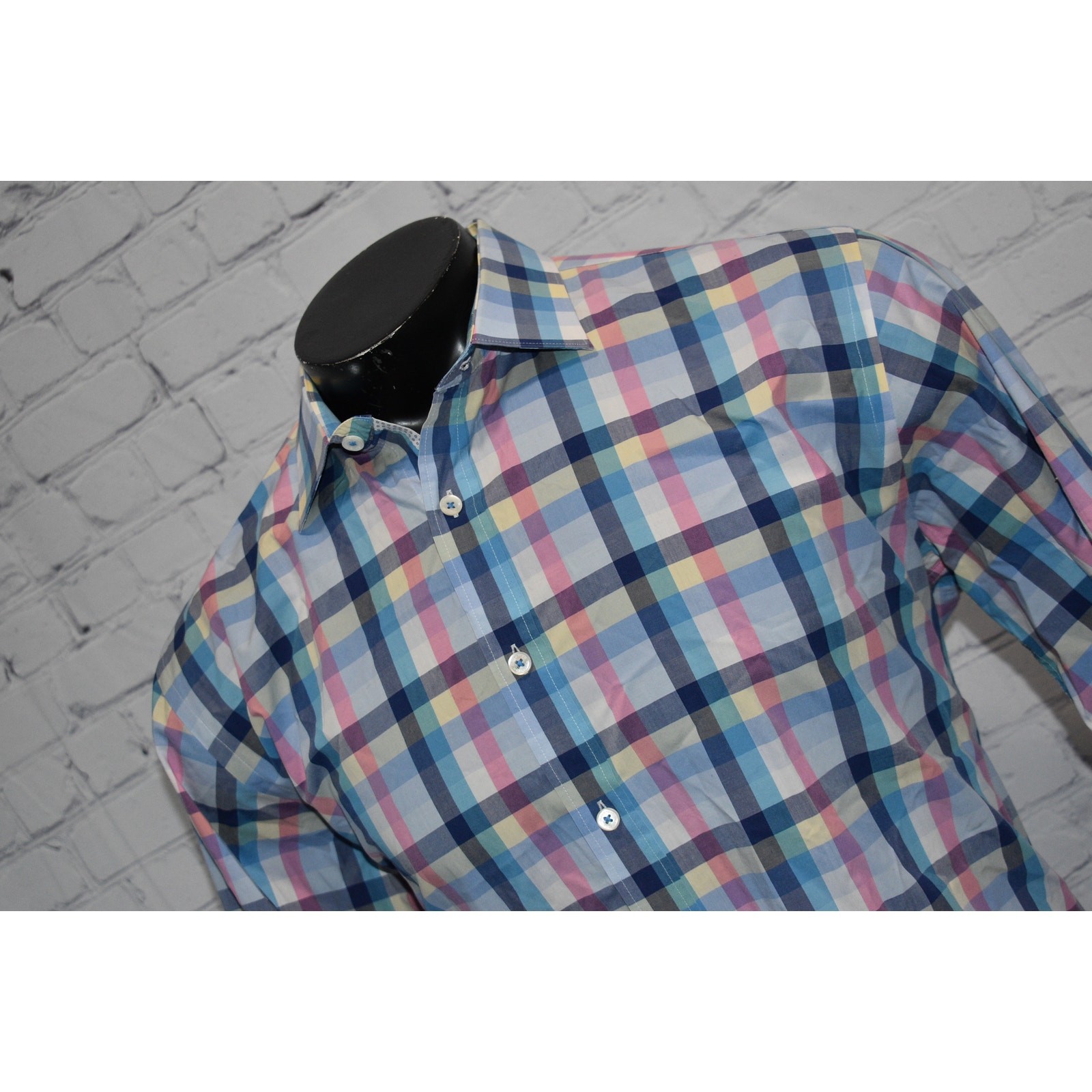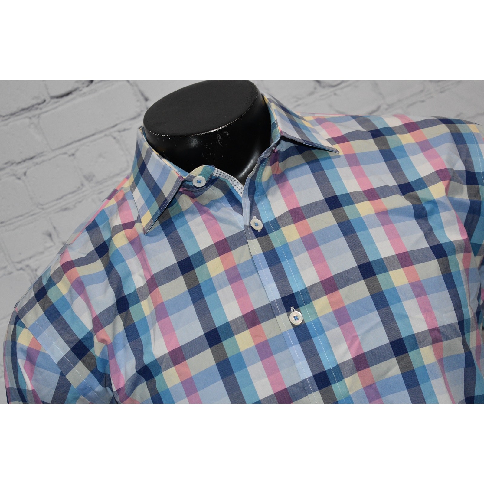 как выглядит Bugatchi Uomo Dress Shirt Mens Size XL Blue Pink Plaid Designs Flip Cuffs фото