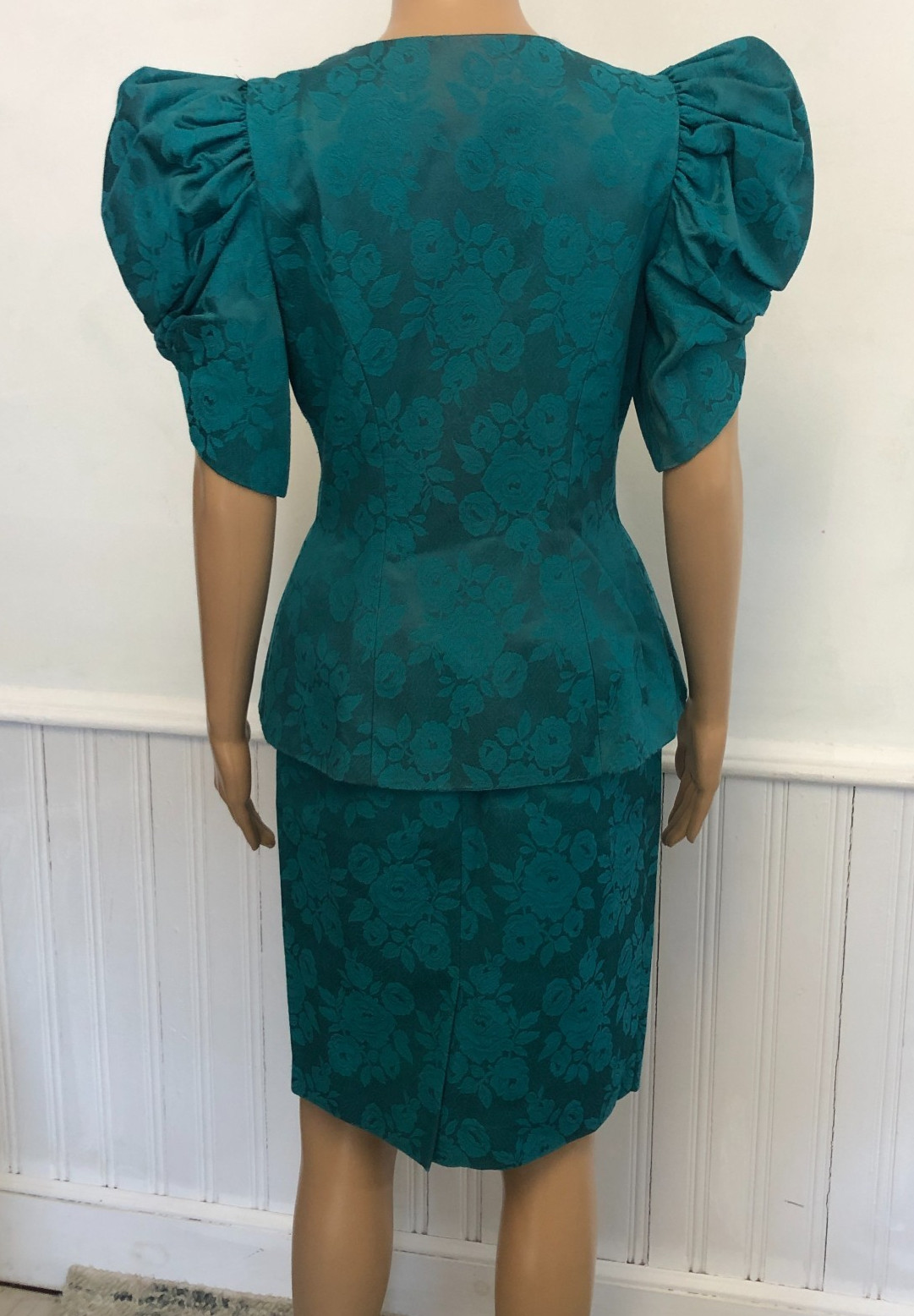 как выглядит Womens vtg 80s Brocade Skirt Set Sz 6 Puff Sleeves Pearls Lace Pencil Skirt EUC фото