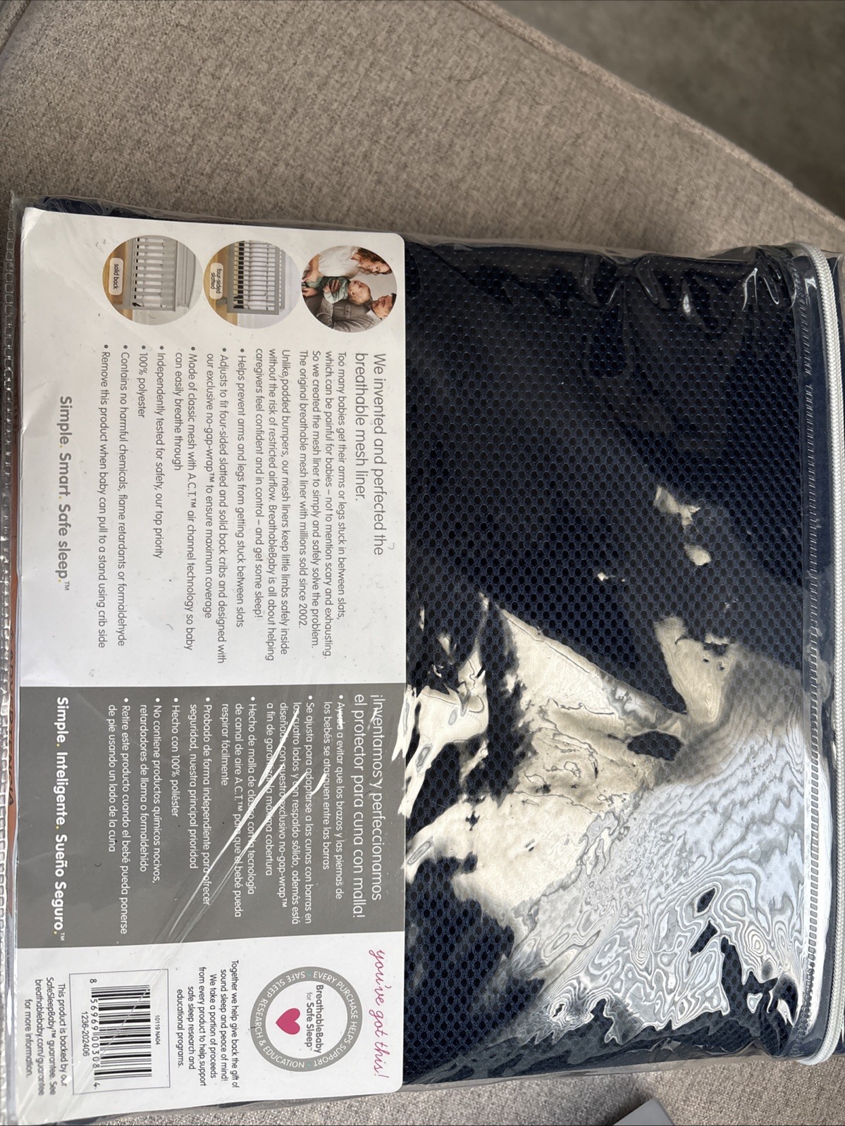 как выглядит Breathable Baby Mesh Crib Liner in True Navy NEW фото