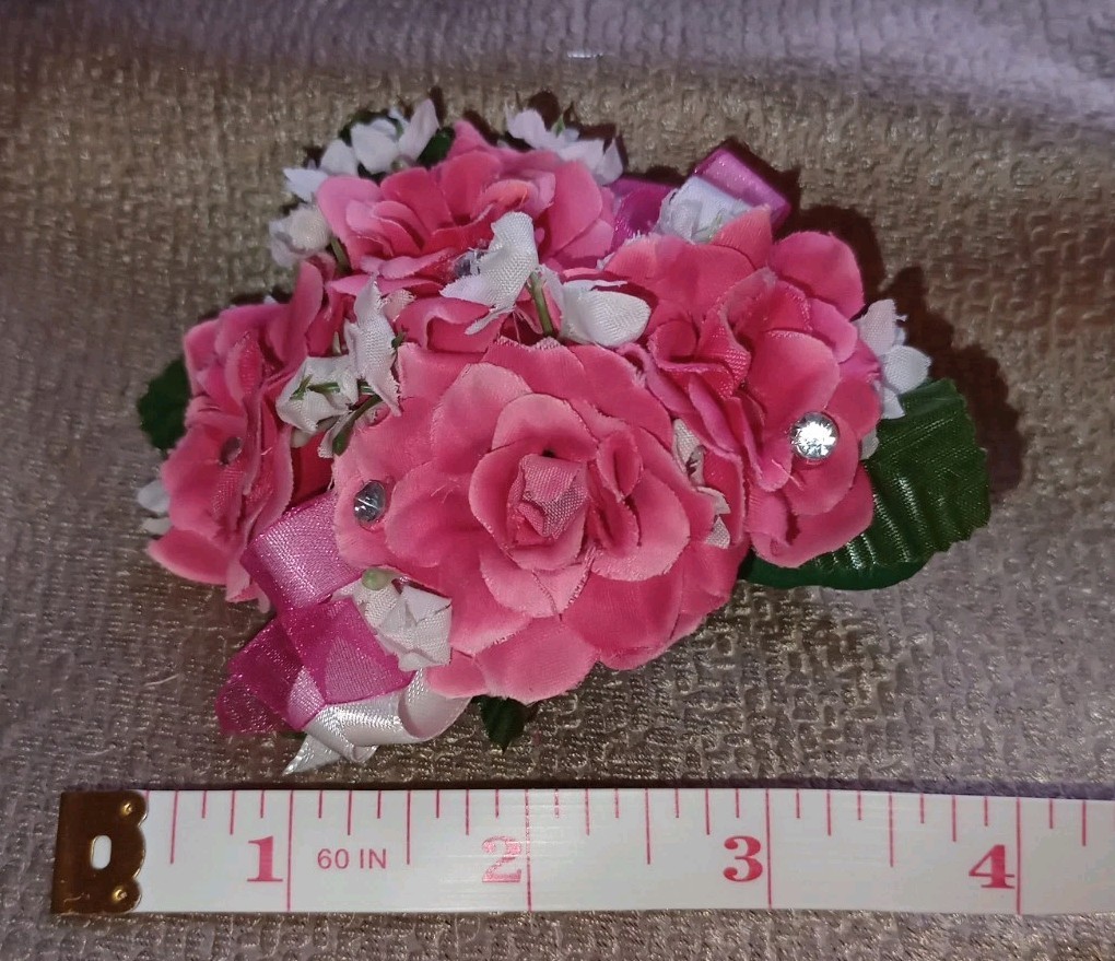 NEW 4 Long Artificial Hot Pink Rose Wrist Corsage With Rhinestones