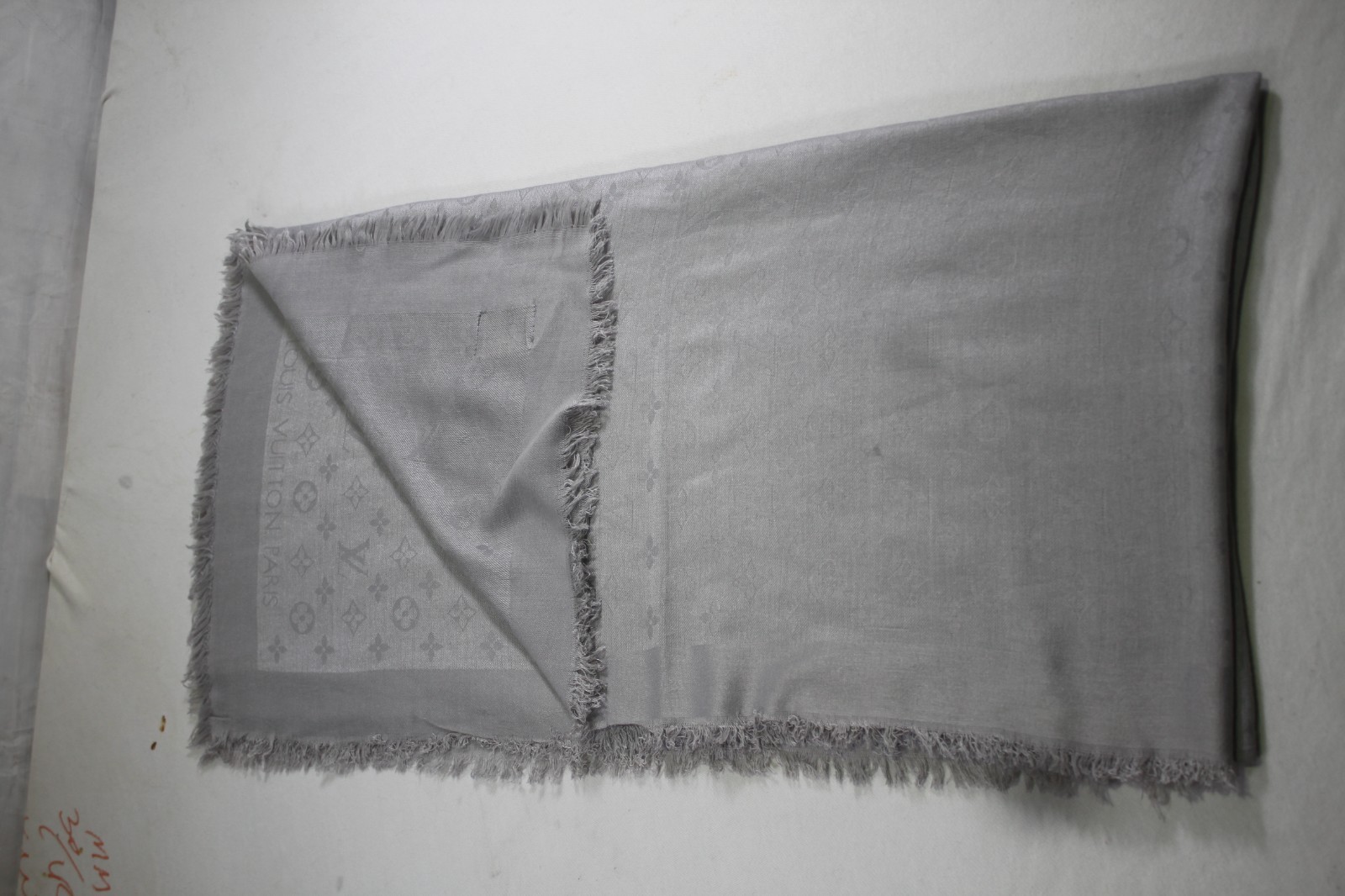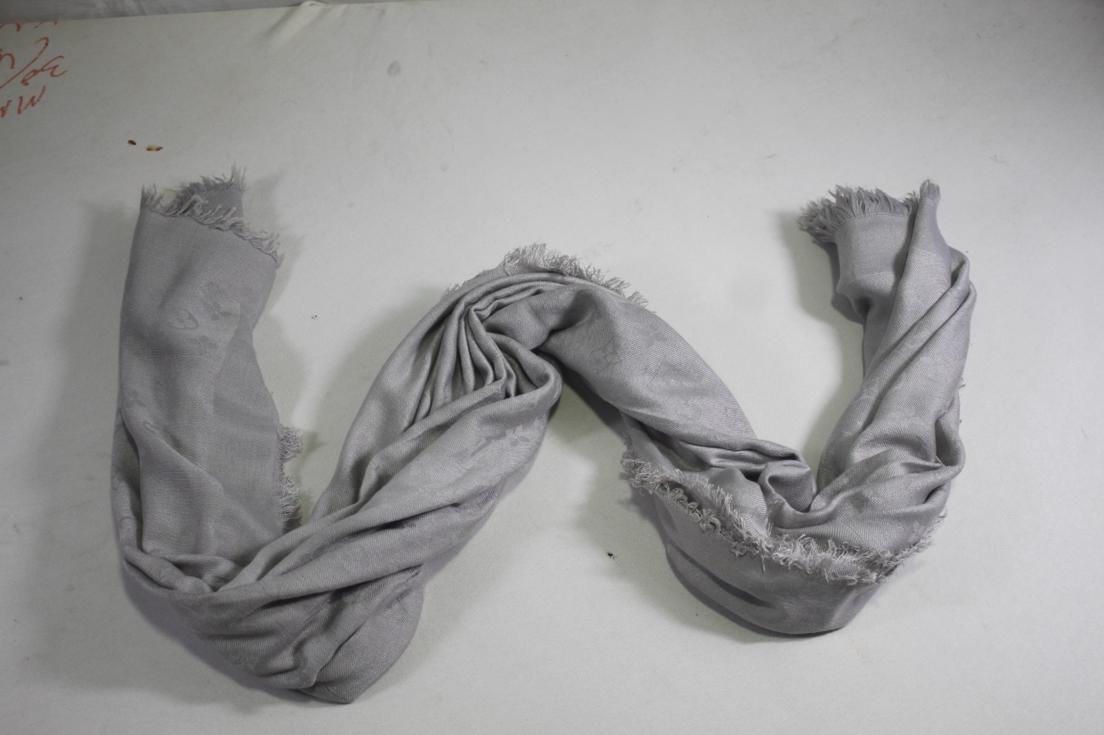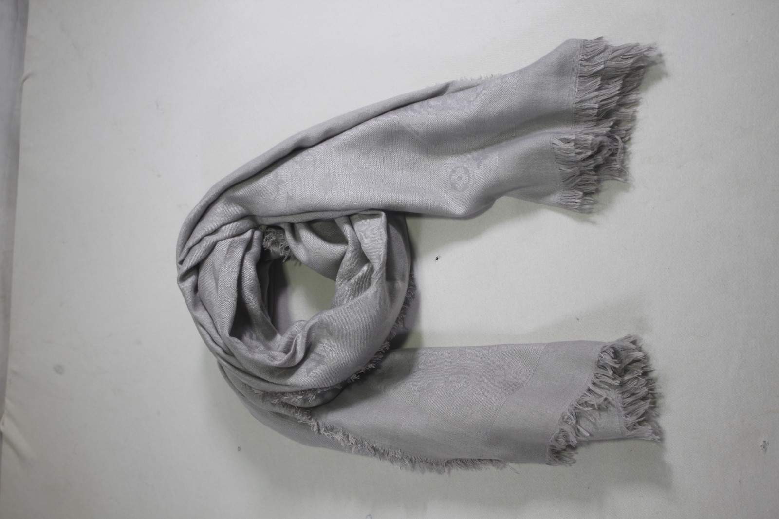 как выглядит Auth Louis Vuitton Scarf Shawl Stole 65 Silk 35 Wool Gray Used фото
