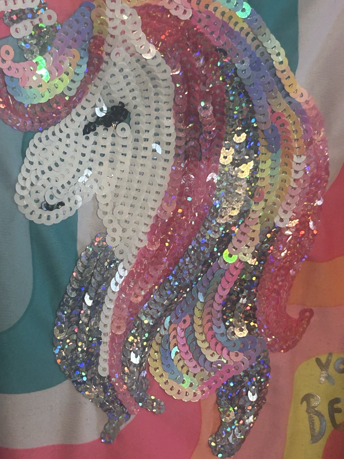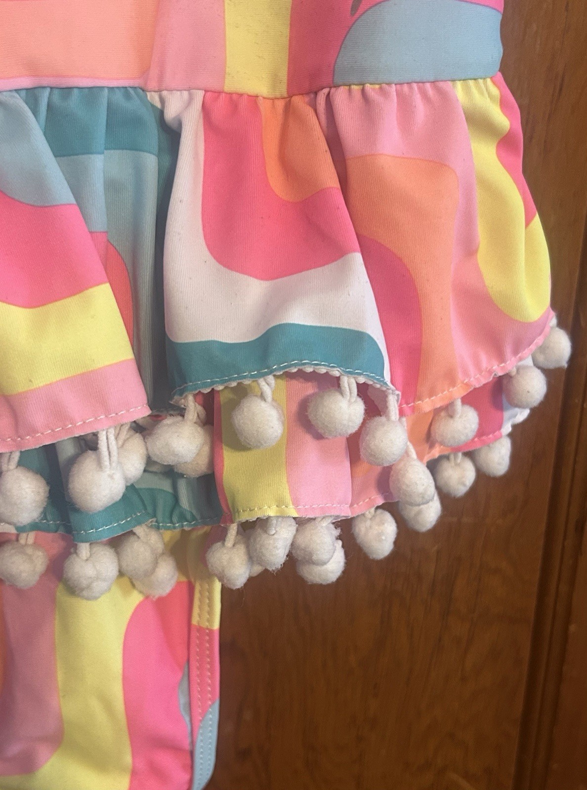 Betsey Johnson Big Girls 14 1 Pc Swimsuit Ruffle Unicorn Pom Pom Pink Sequin