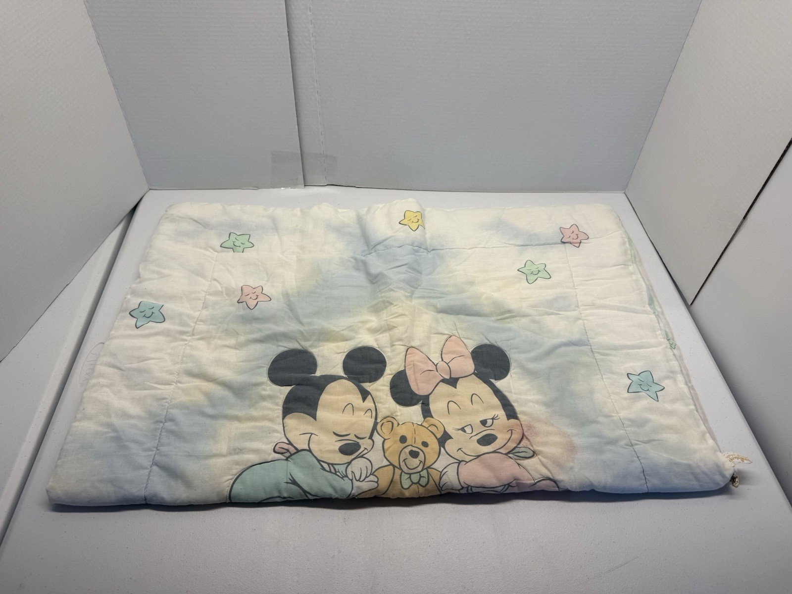 как выглядит Vintage Dundee Disney Mickey Minnie Pluto Teddy Bear Stars Baby Crib Blanket фото