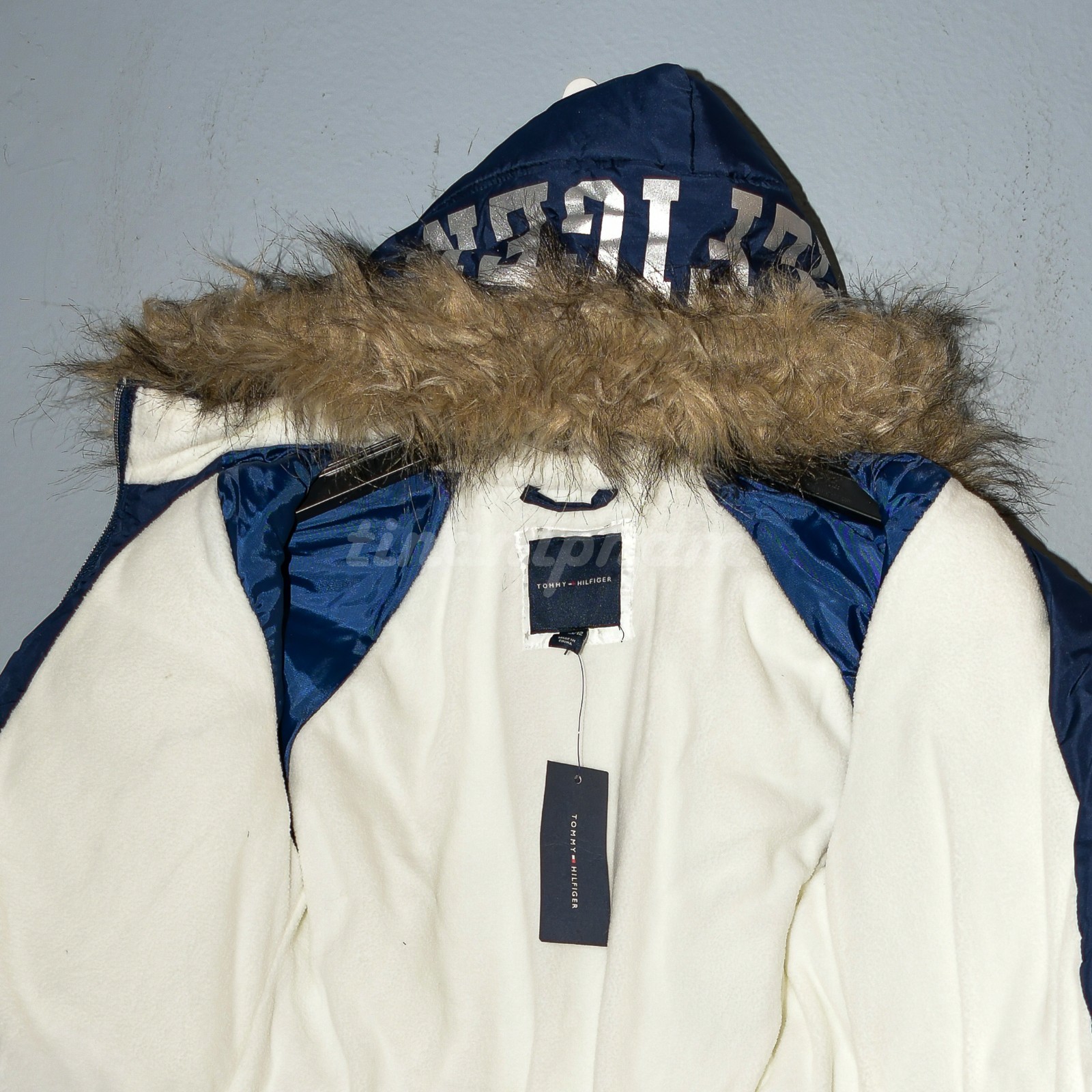 как выглядит Tommy Hilfiger Girls Fleece Lined Puffer Jackets in navy and pink фото