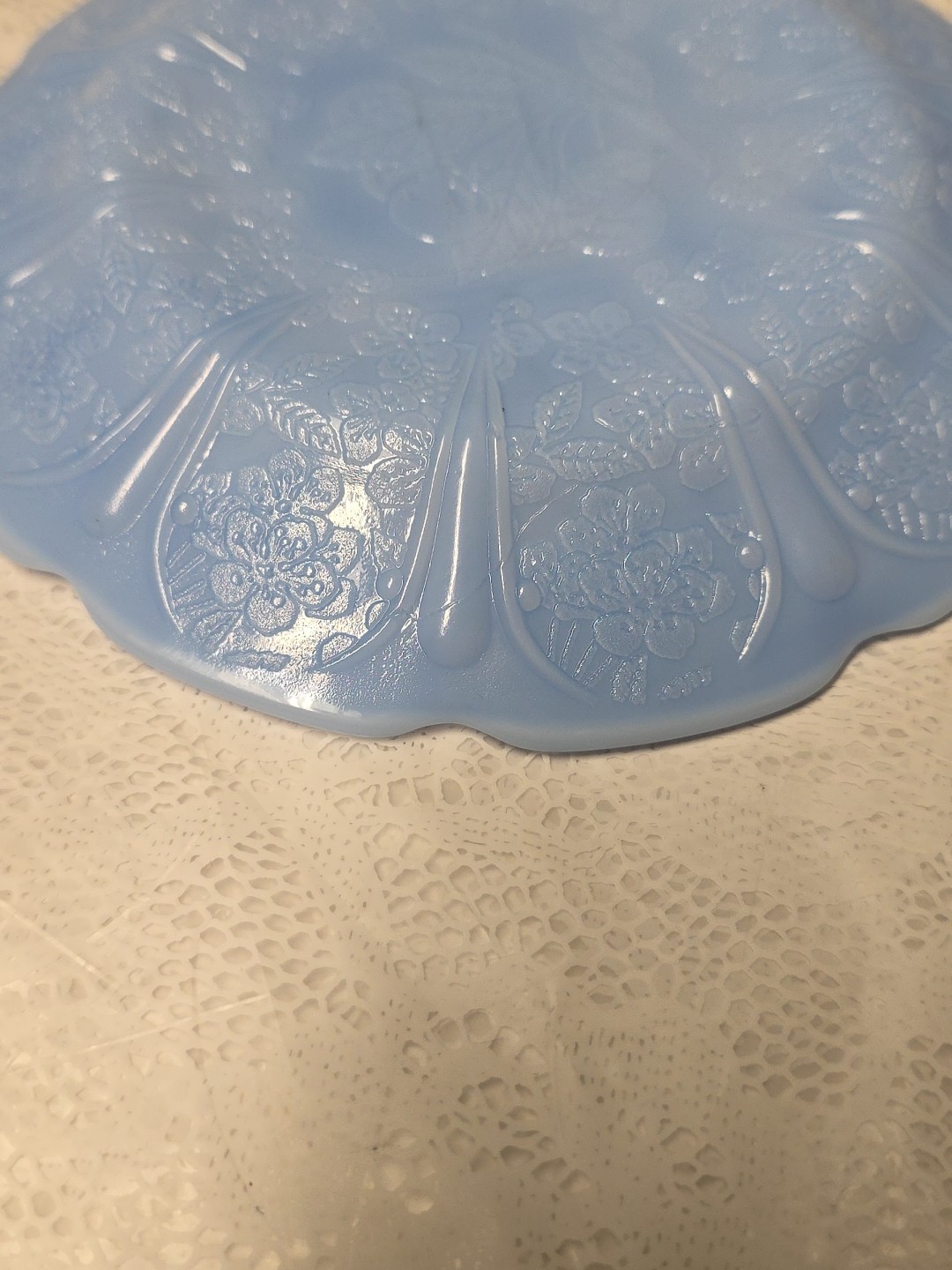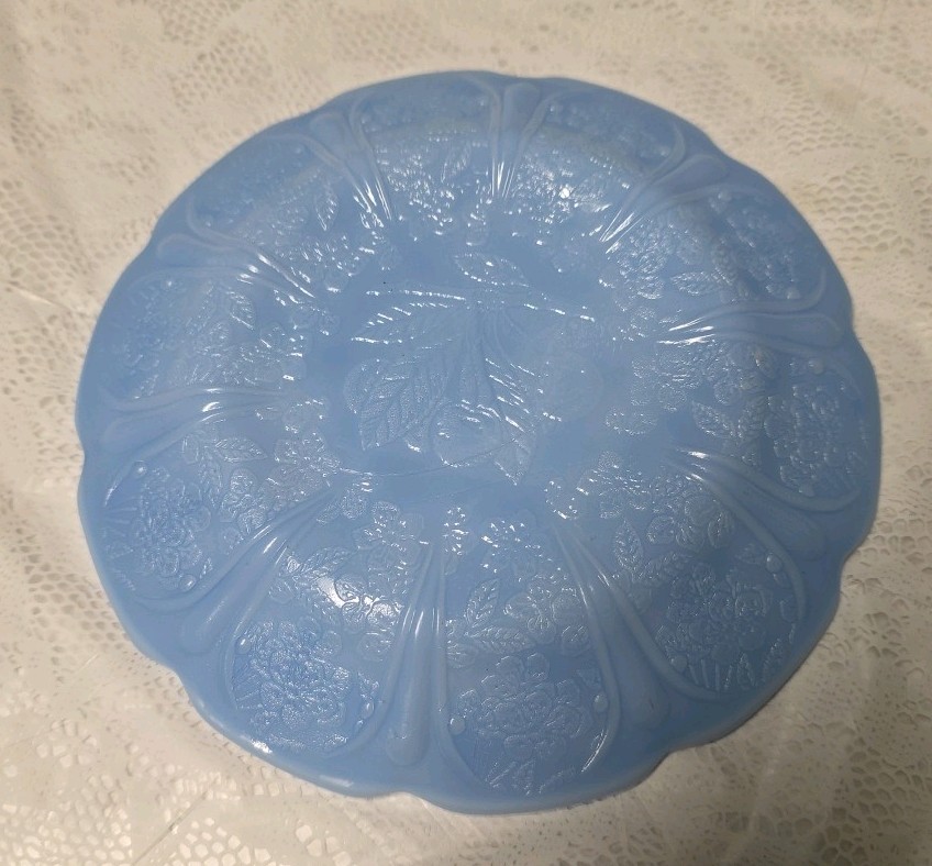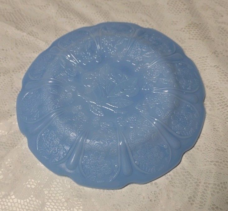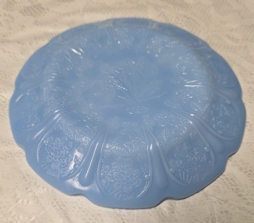 как выглядит Jeannette Cherry Blossom Delphite Depression Glass, 2 Child Plates for Tea Set фото